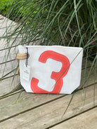 La Midinette est un petit sac qui permet de rassembler les éléments nécessaires à votre journée. Elle se porte à la main. La Midinette est réalisée à partir de voile de bateau 100% recyclée. Numéro 3 Corail cousu avec notre célèbre point ZigZag.