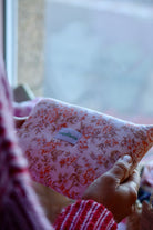 Pochette équipée d'une fermeture éclair, avec un rembourrage en ouatine et une doublure en coton blanc. Ses dimensions sont de 19 x 13 cm.