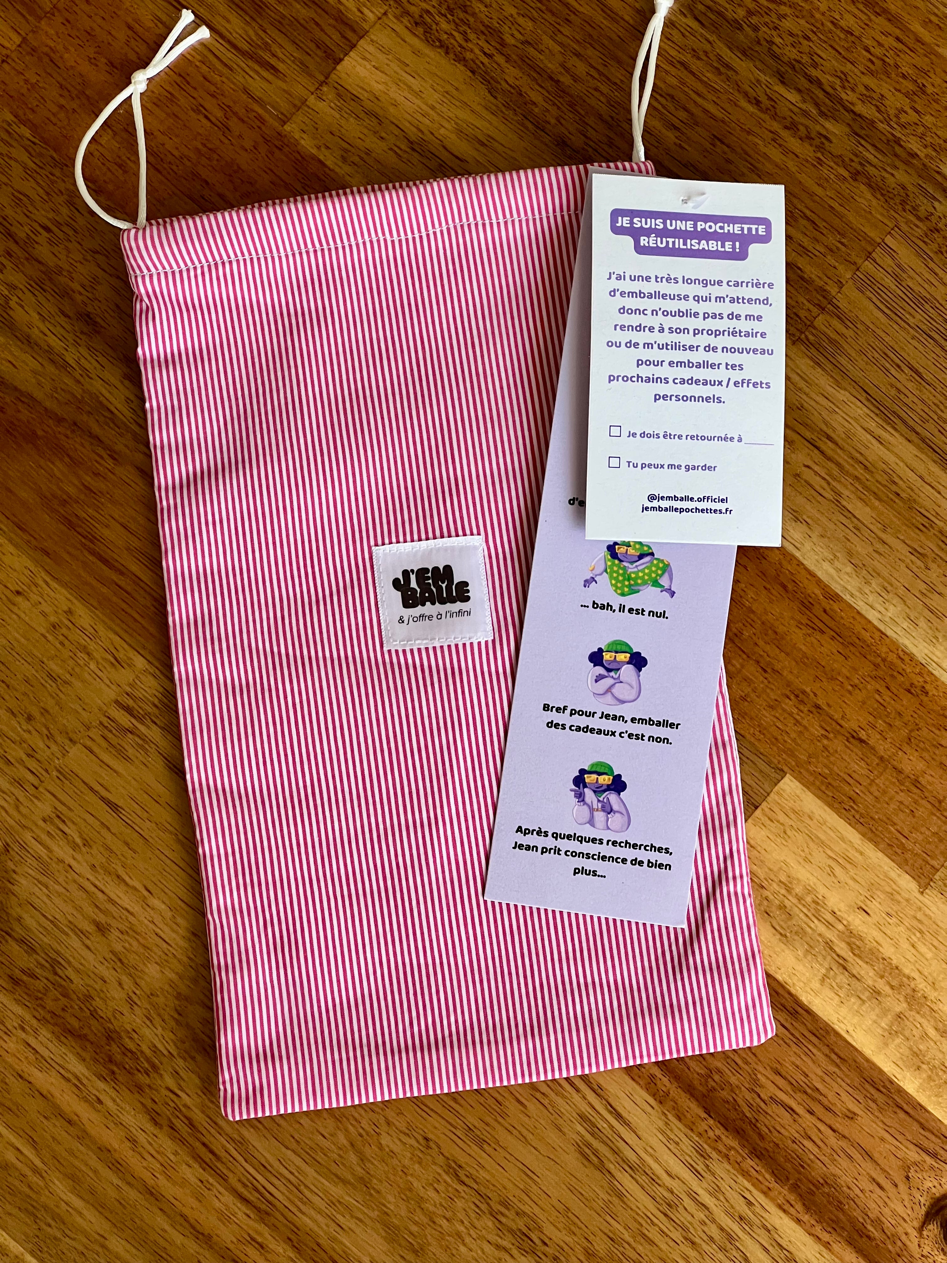 Les pochettes-cadeaux J'emballe de taille XS sont parfaites pour emballer sans difficulté et sans déchet un manga ou livre de poche fin, un parfum, des cosmétiques, une paire de lunette, etc.