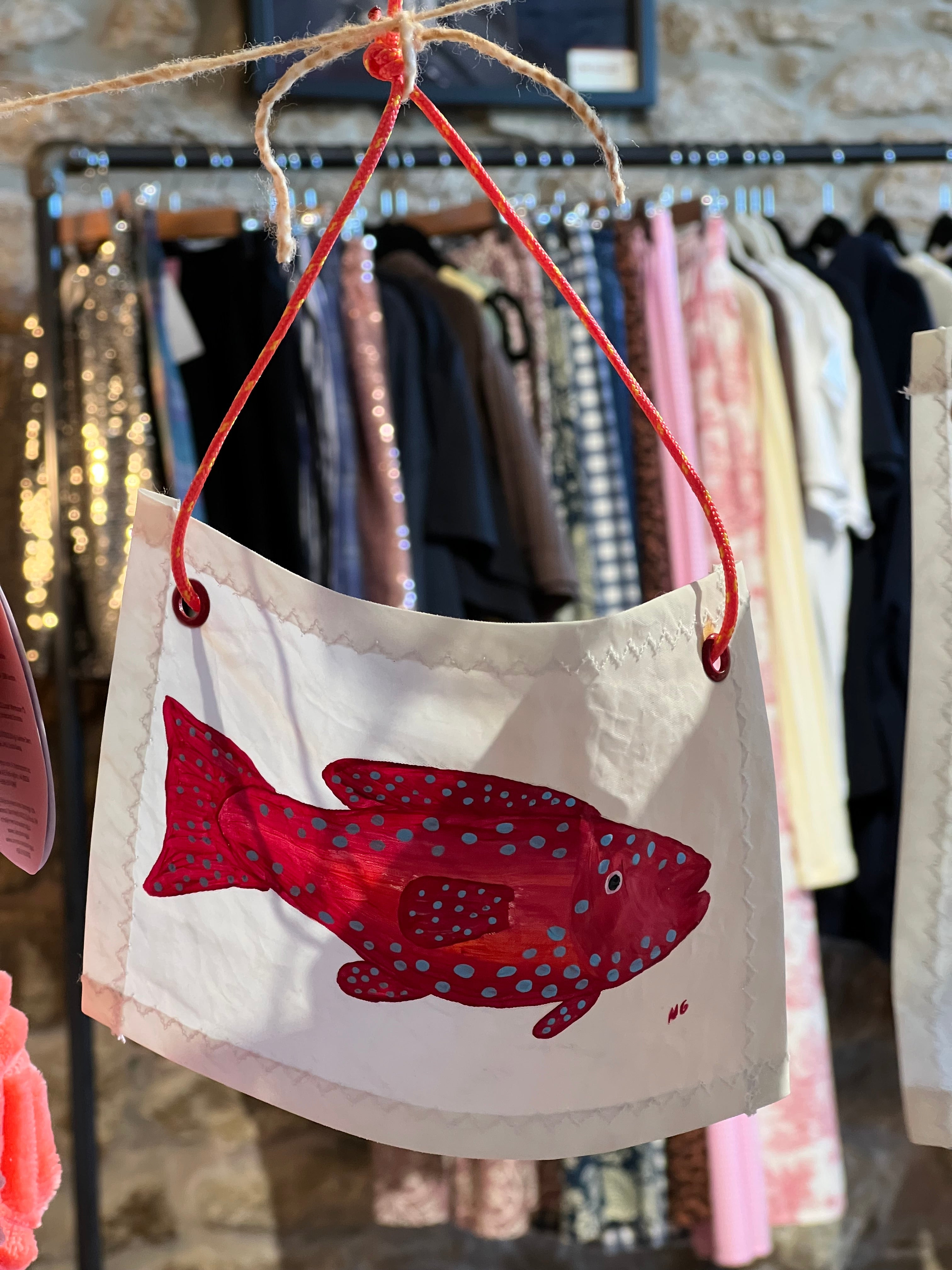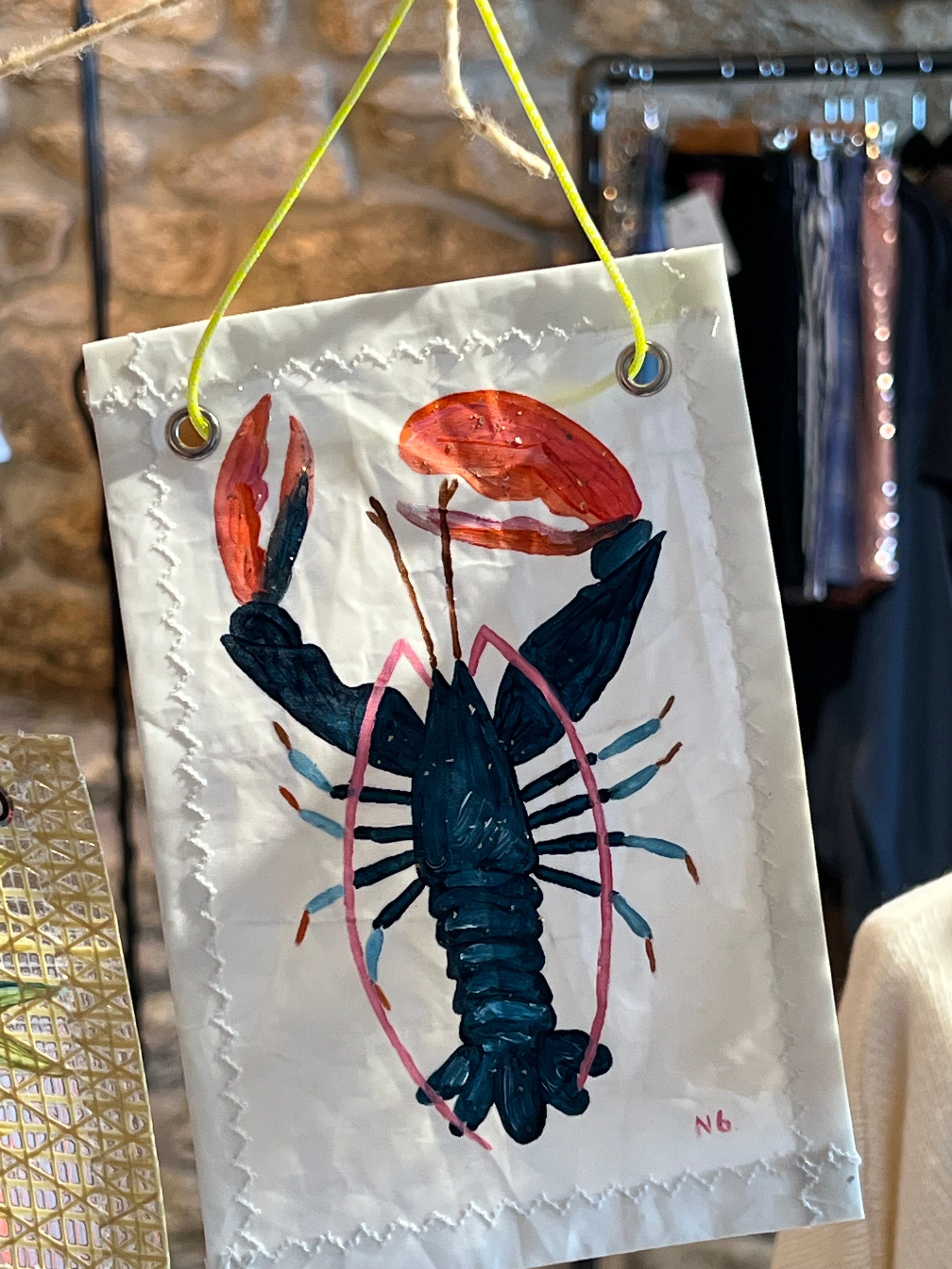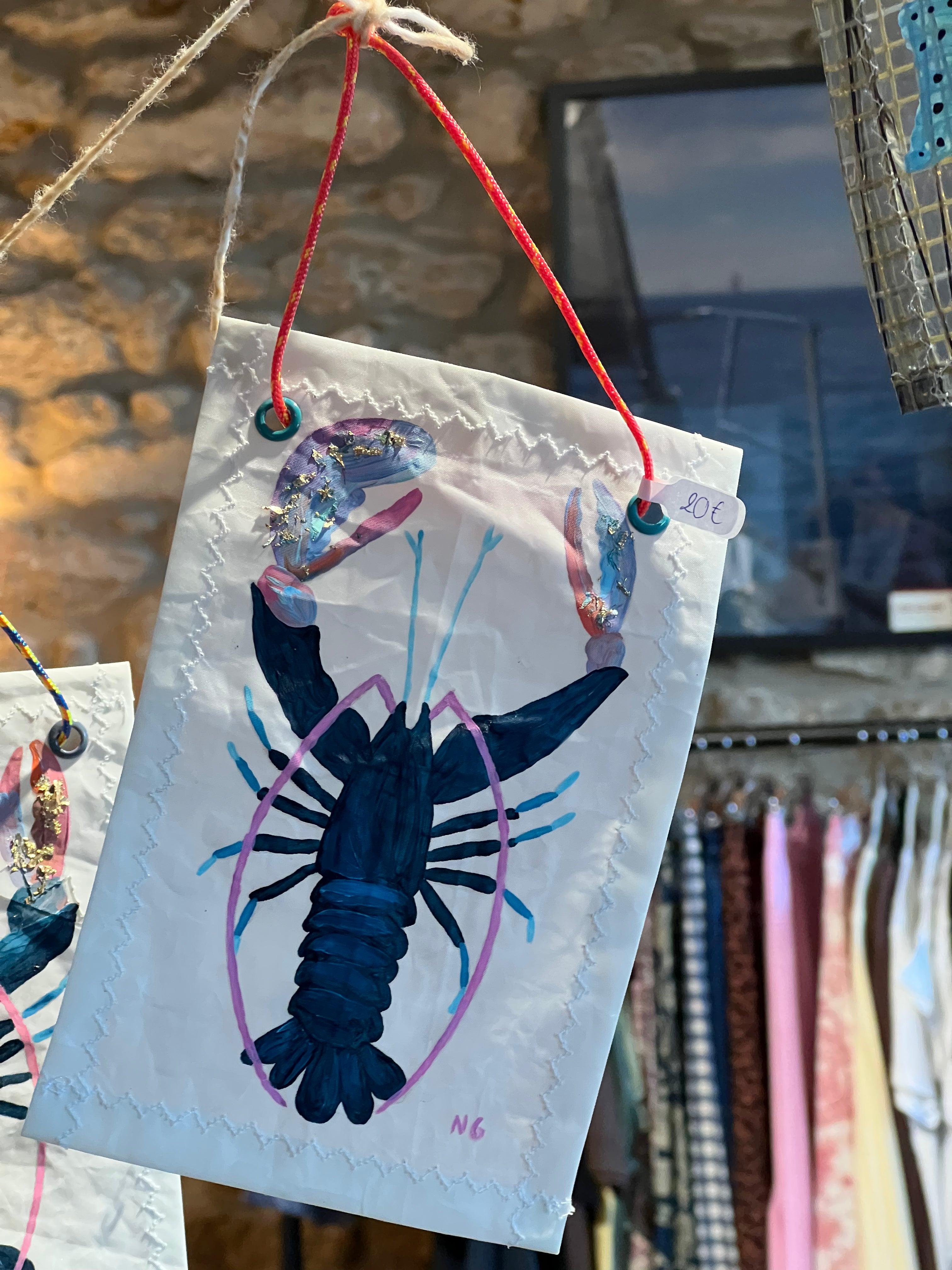 Apportez une touche marine unique à votre intérieur avec ces petites décorations signées Bleu Blanc Voile. Réalisées à la main à partir de voiles recyclées, elles représentent des homards ou poissons peints à l’acrylique avec soin et précision.