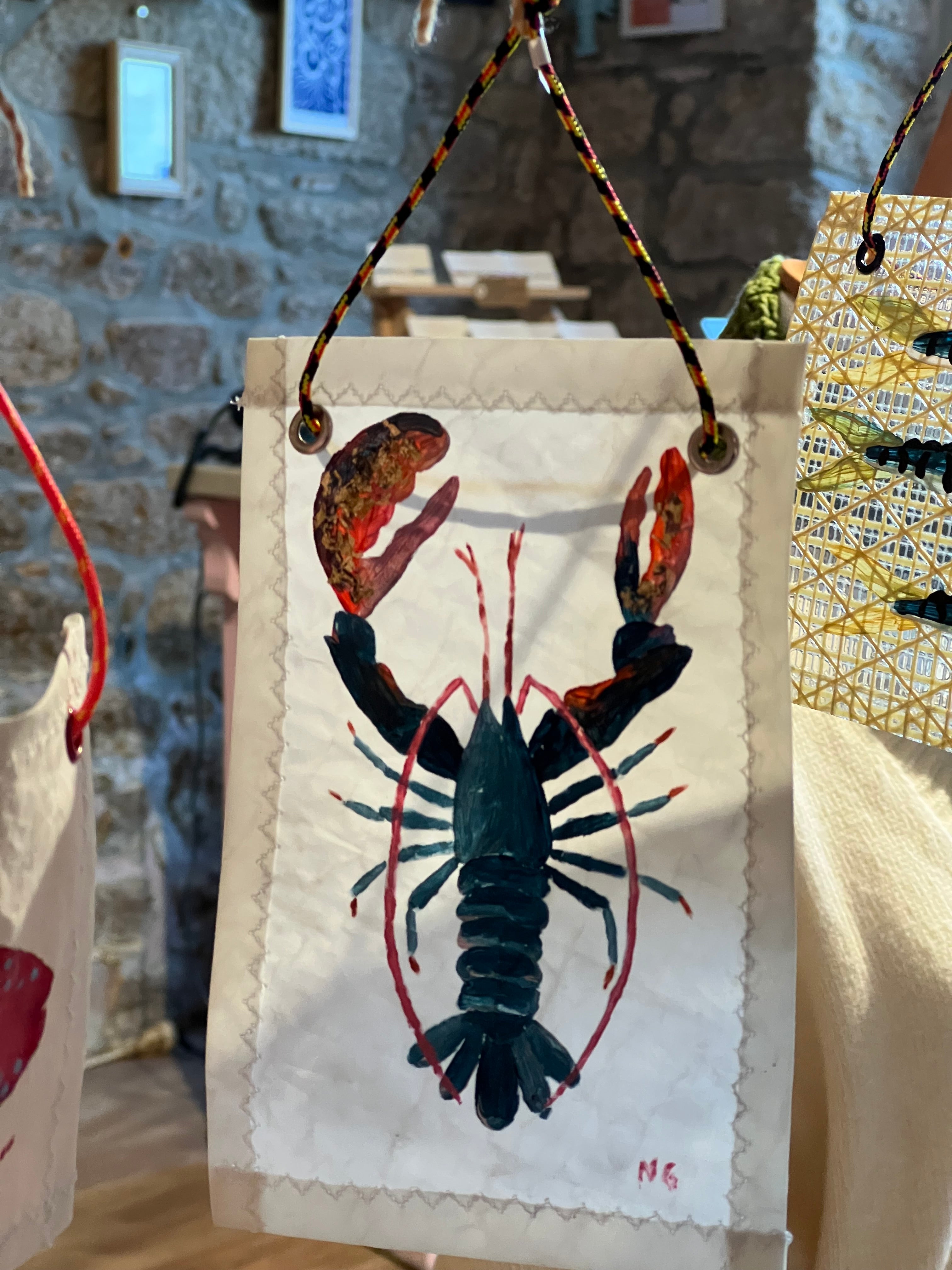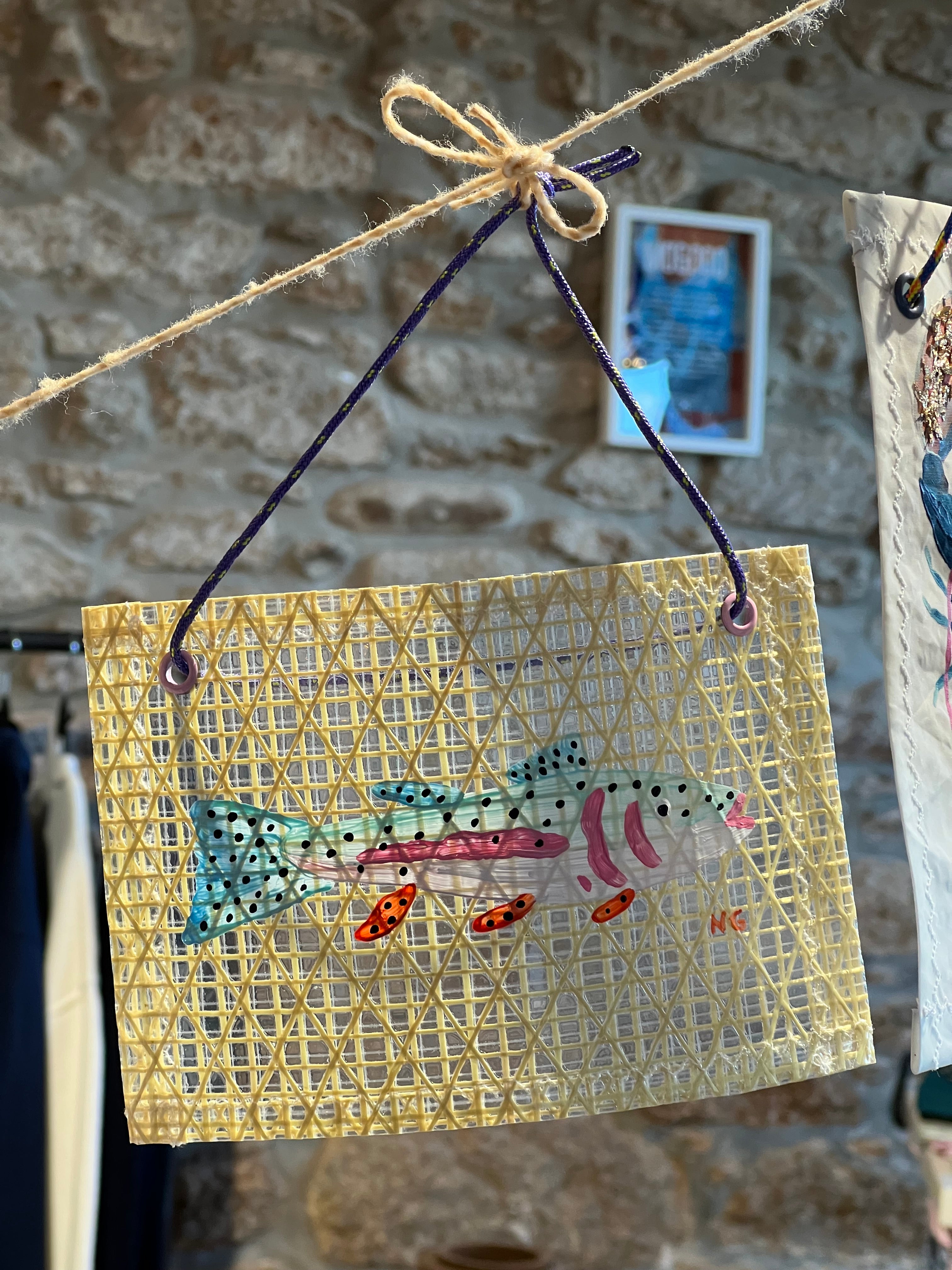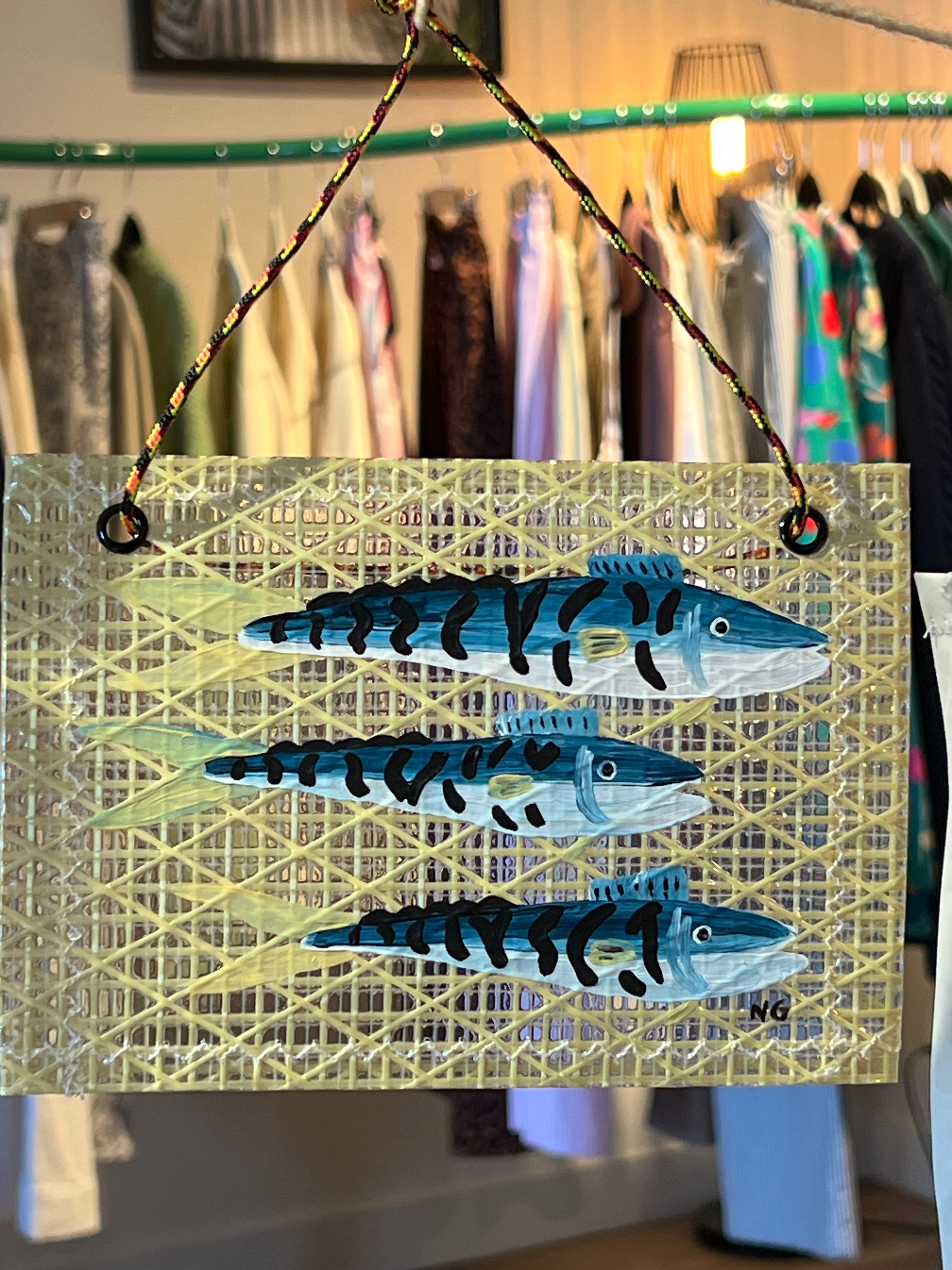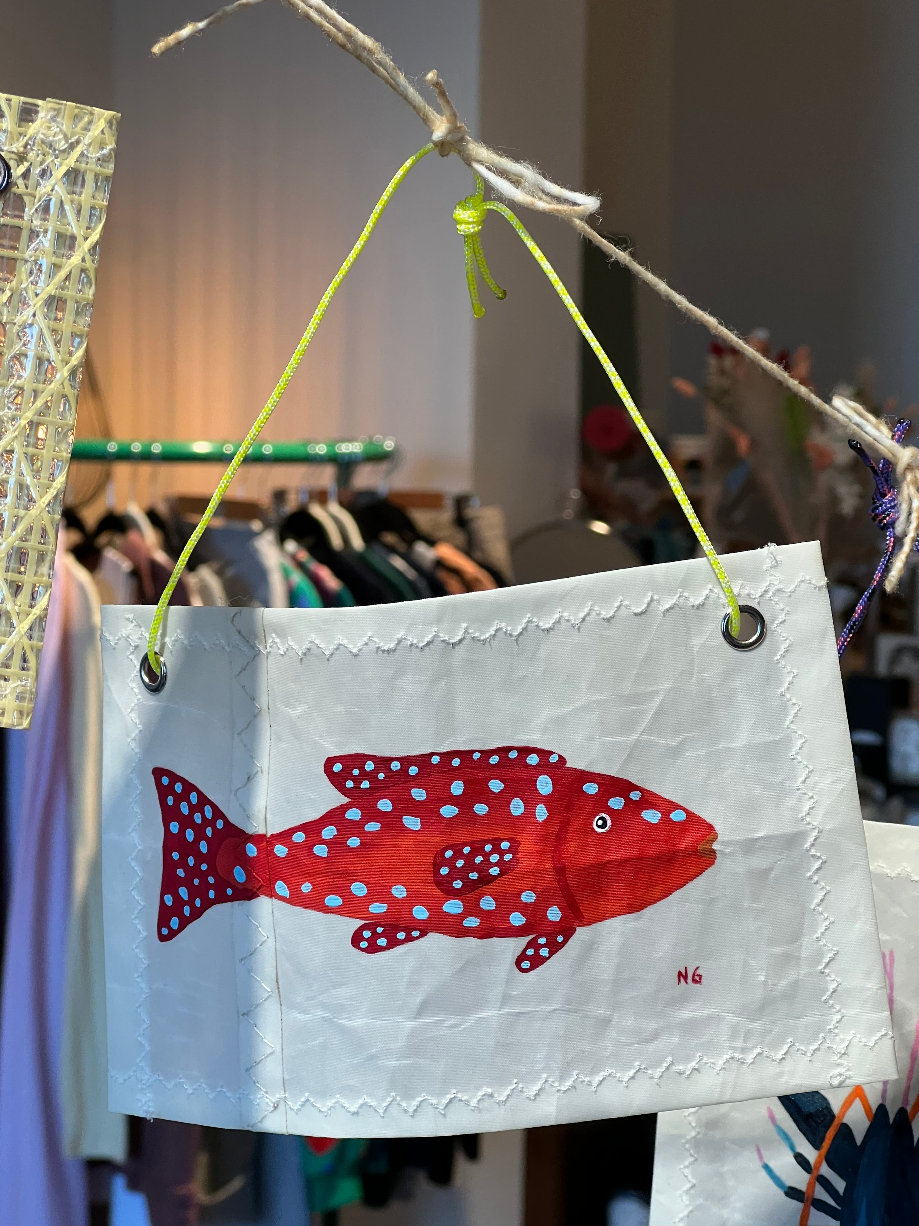 Apportez une touche marine unique à votre intérieur avec ces petites décorations signées Bleu Blanc Voile. Réalisées à la main à partir de voiles recyclées, elles représentent des homards ou poissons peints à l’acrylique avec soin et précision.