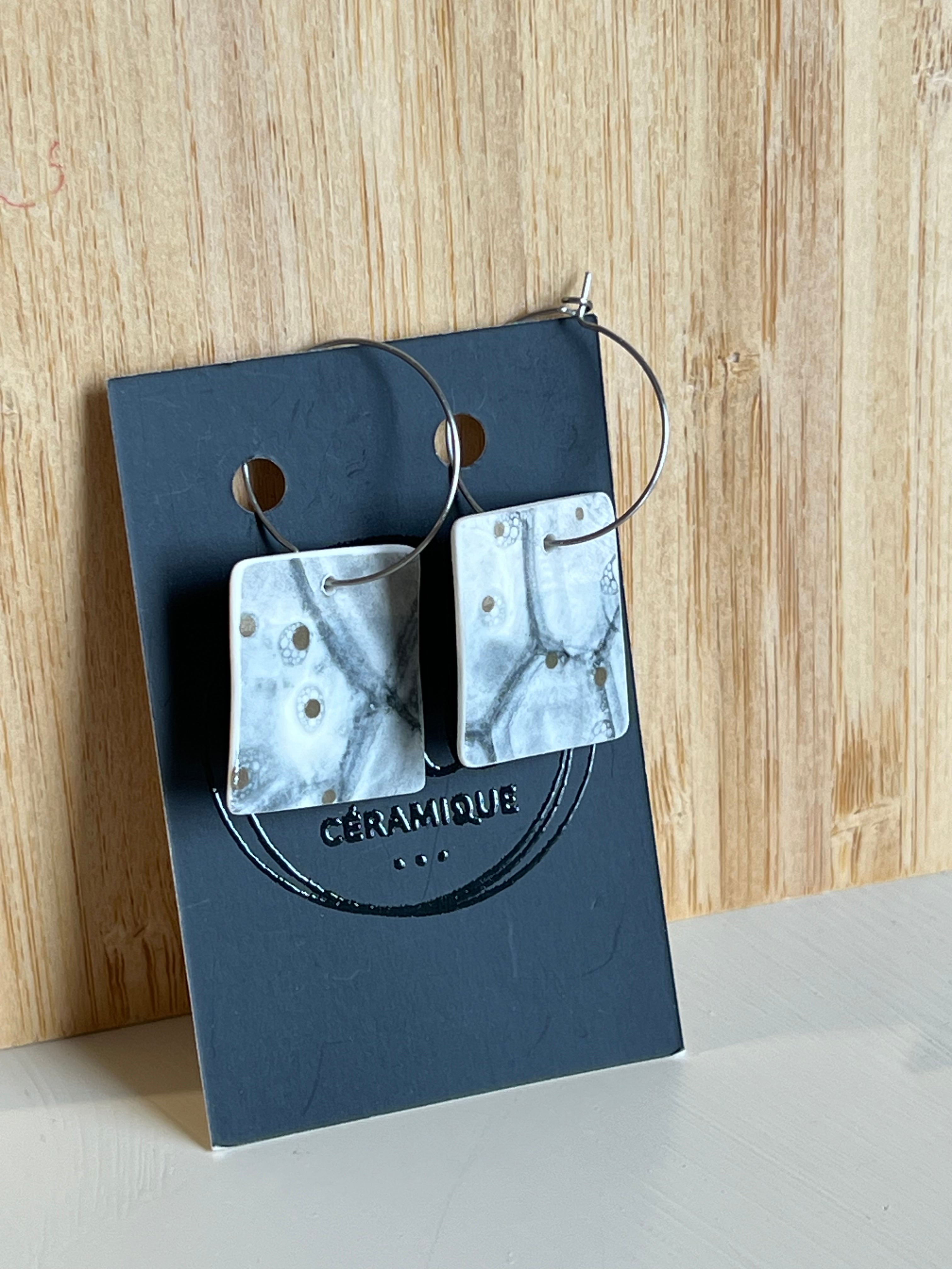 Je travaille la porcelaine de manière décomplexée, en n'hésitant pas à bousculer la matière : superposition de filaments de porcelaine, mishima, gomme laque, effet de matière, combinaison du noir et blanc, afin de jouer avec la pureté de la porcelaine.