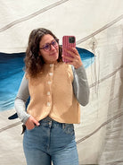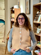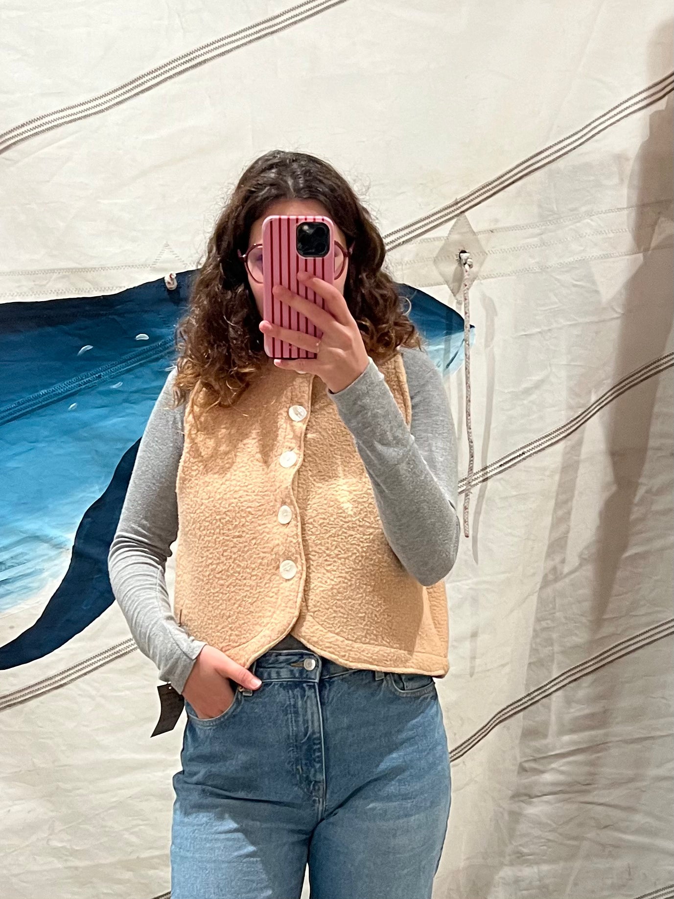 Ce gilet est entièrement réalisé en upcycling et confectionné à la main à Biarritz. Chaque pièce est unique et travaillée avec soin pour offrir une coupe confortable et durable. Sa ligne sobre et son style intemporel s’adaptent facilement à toutes les tenues. Un choix responsable qui valorise l’artisanat français et les matières réemployées.