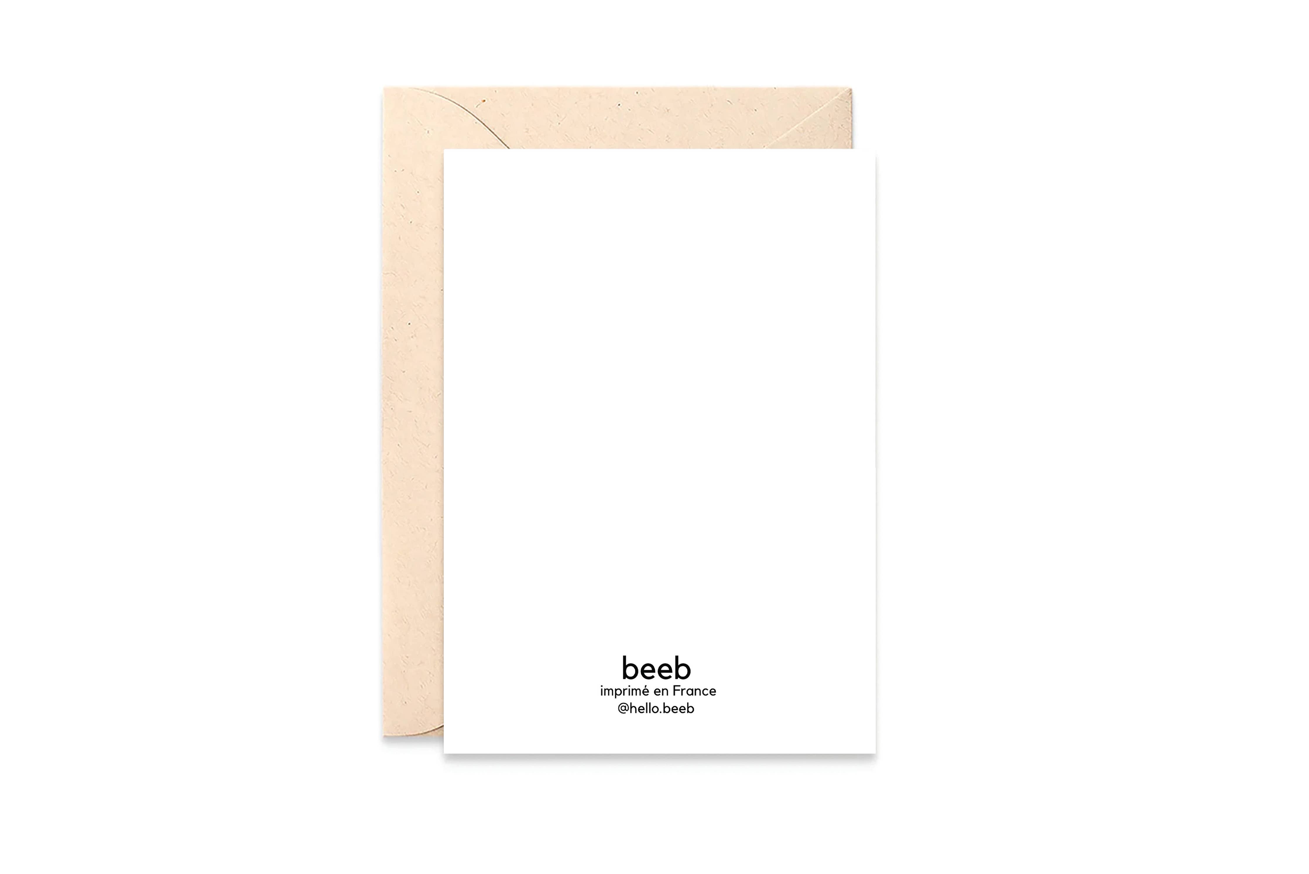 Cette carte pliée au format A6 (15 x 10,5 cm sans emballage ) est accompagnée d’une enveloppe en papier Kraft recyclé.