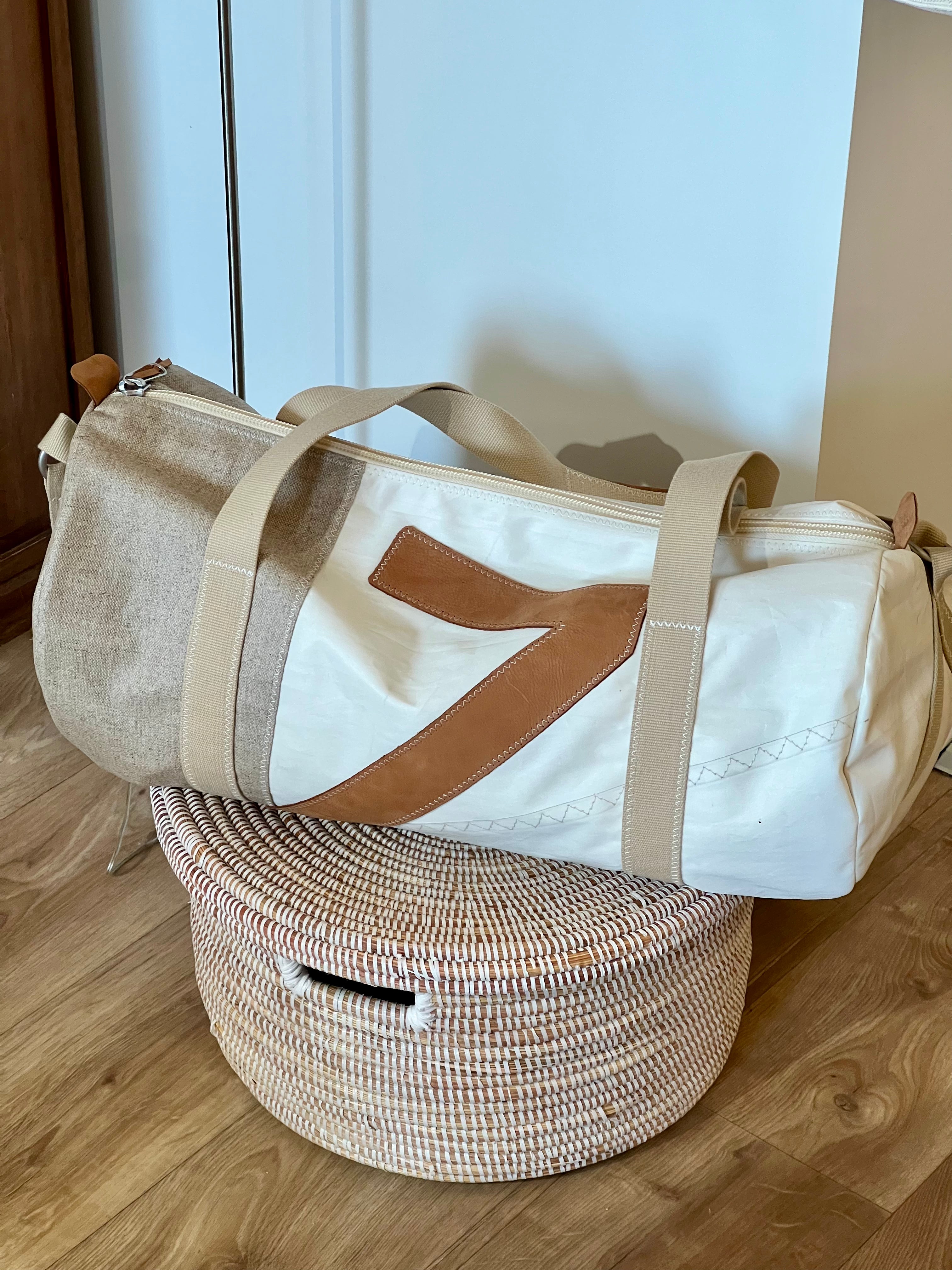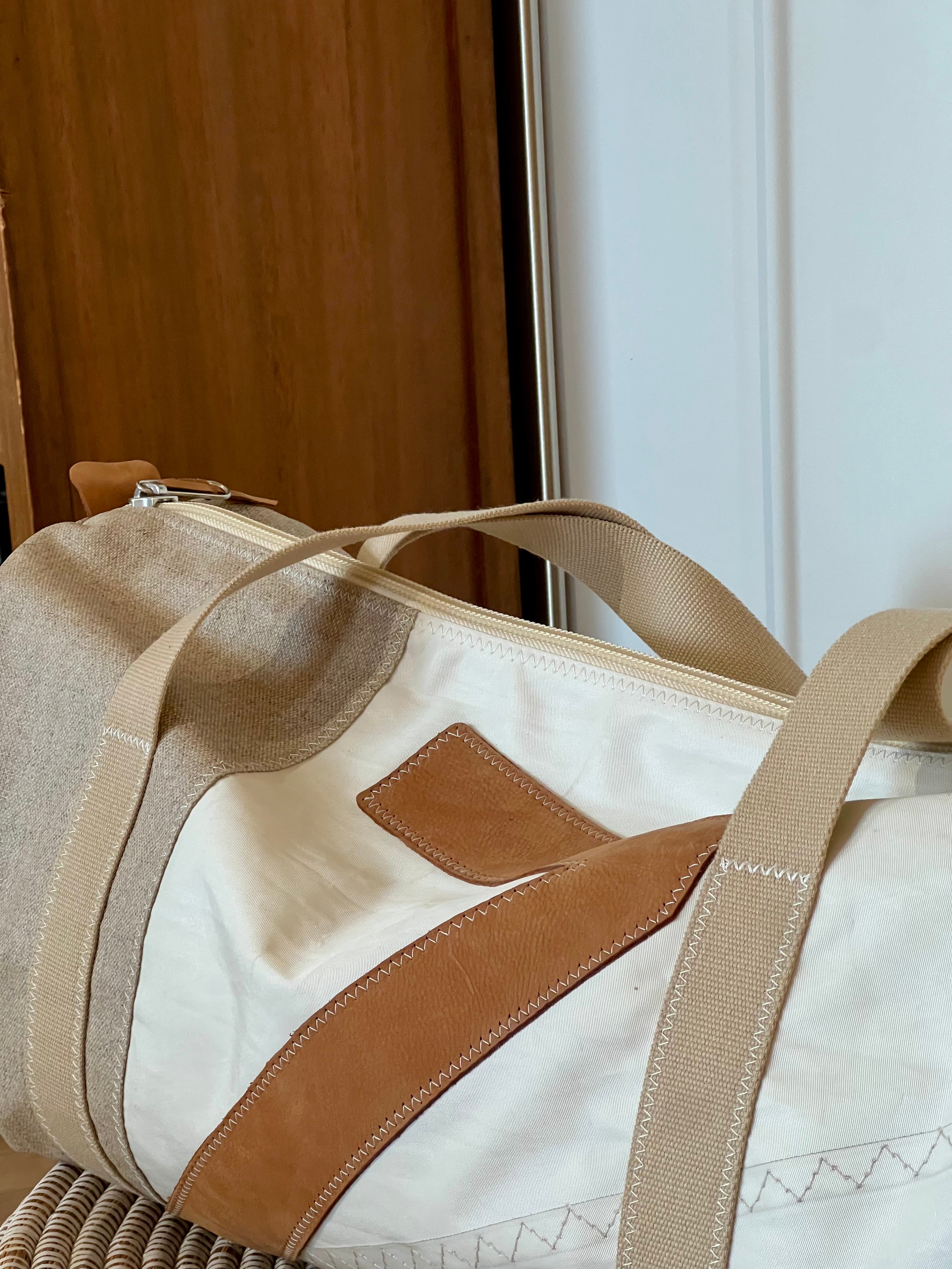 Confortable à porter grâce à ses anses avec renfort en cuir, le Onshore se tient à la main ou se porte à l’épaule. Sa base en lin naturel, son chiffre en cuir et le certificat d’origine cousu à l’intérieur garantissent l’authenticité de la voile utilisée.