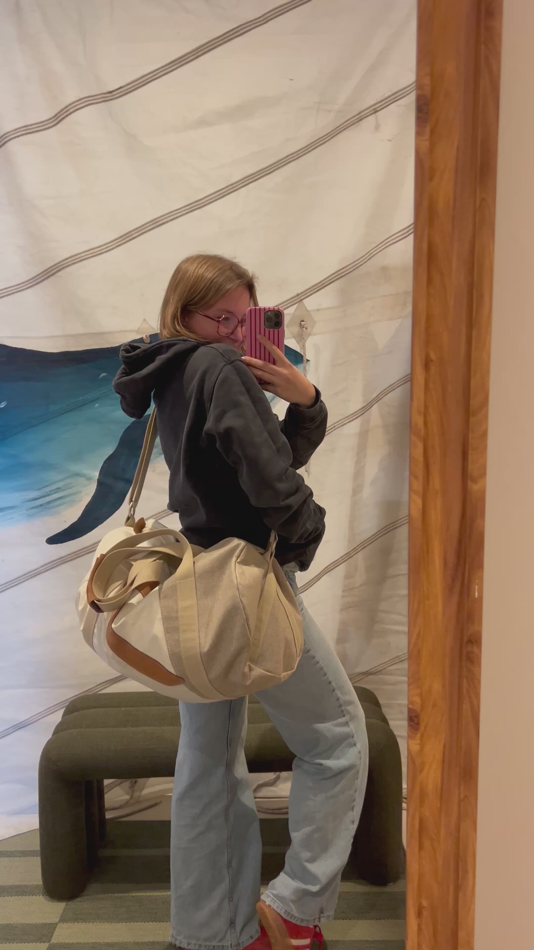 Anses en sangles de coton et poignée en cuir avec velcro