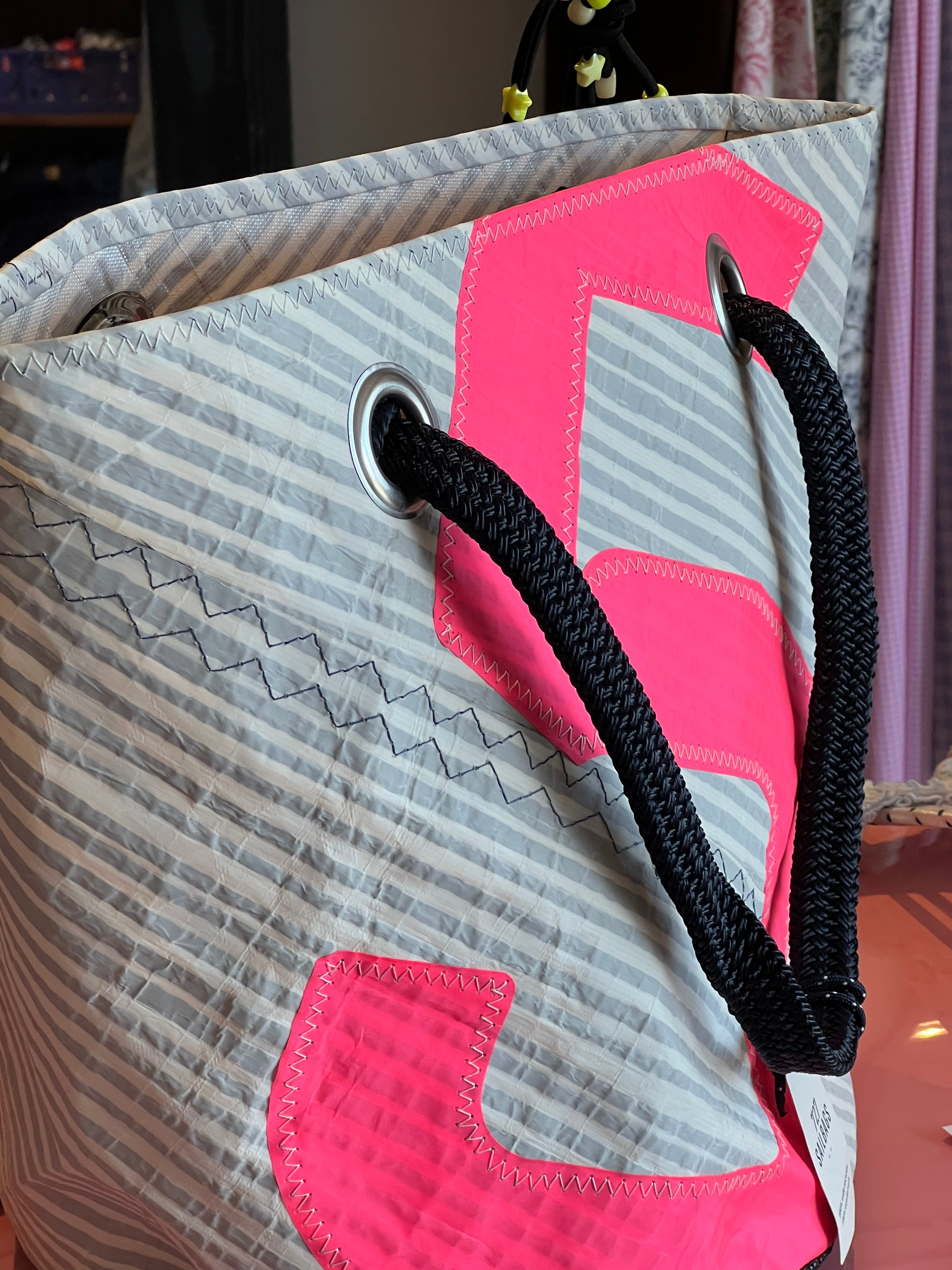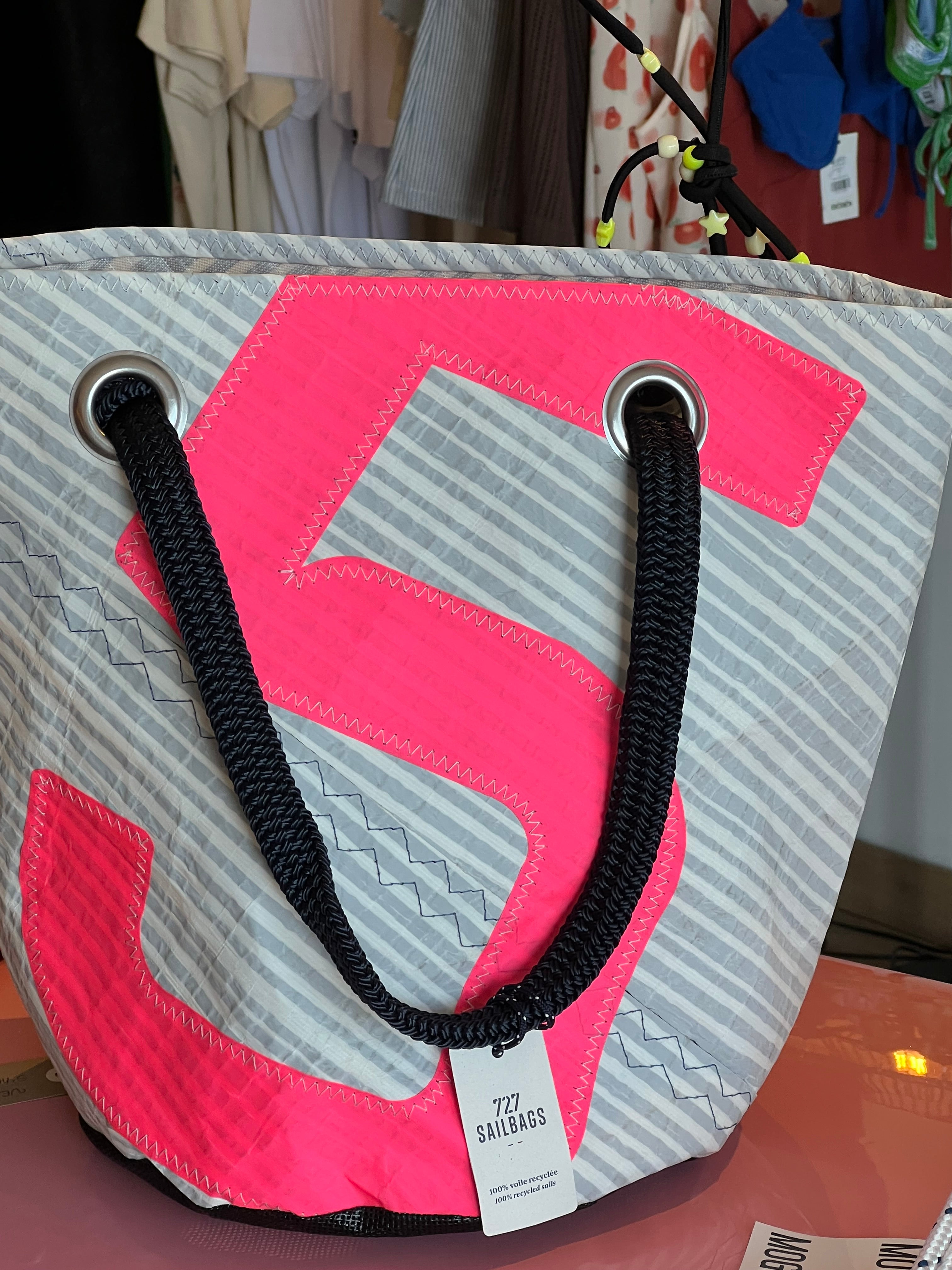 Alliez style sportif et praticité avec le Beach Bag 727 Sailbags x TBS ! Confectionné en voile technique grise clair 100 % recyclée, sublimé par un chiffre rose, ce sac de plage affiche un look moderne et dynamique.