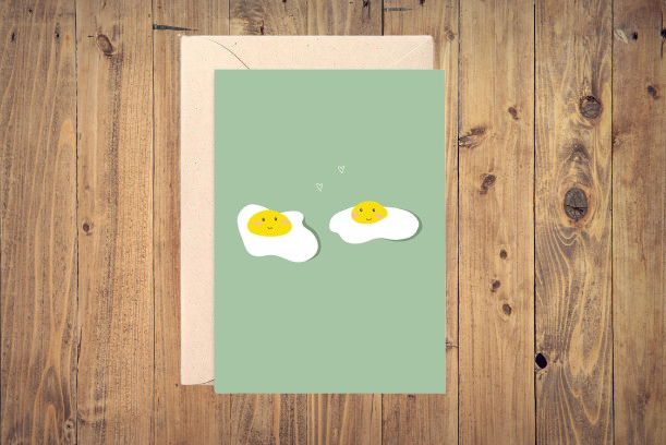 Elle crée des cartes, affiches et objets déco aux couleurs joyeuses, dessinés à la main, imprimés localement sur papier FSC de 300 g, en quantités limitées pour éviter la surproduction.