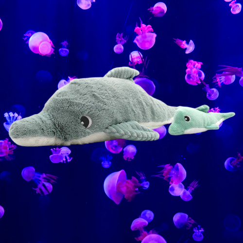 Peluche Maman & Bébé dauphin - menthe 50CM