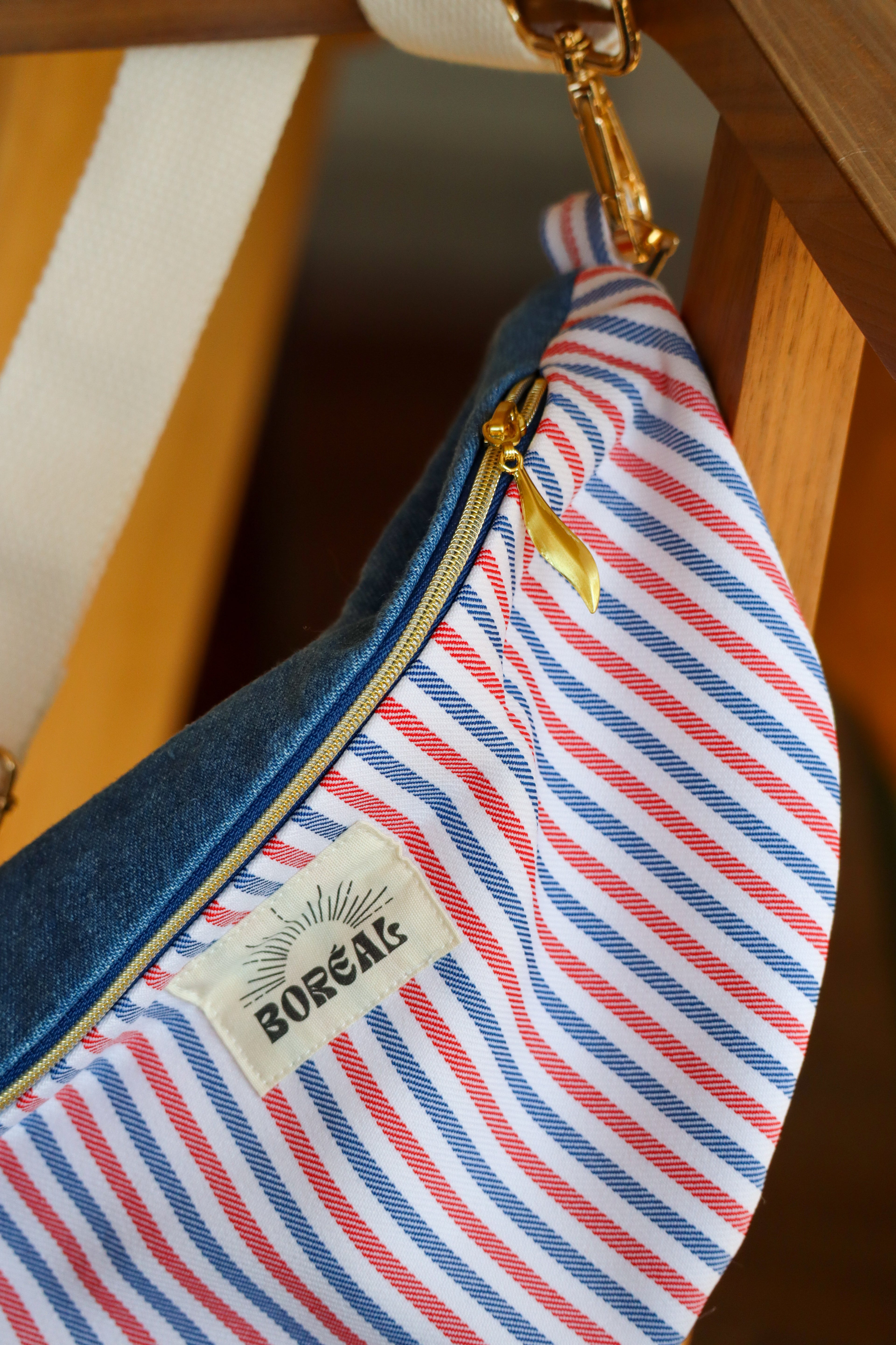 Sac Banane - Jean Rayures bleu, blanc et rouges