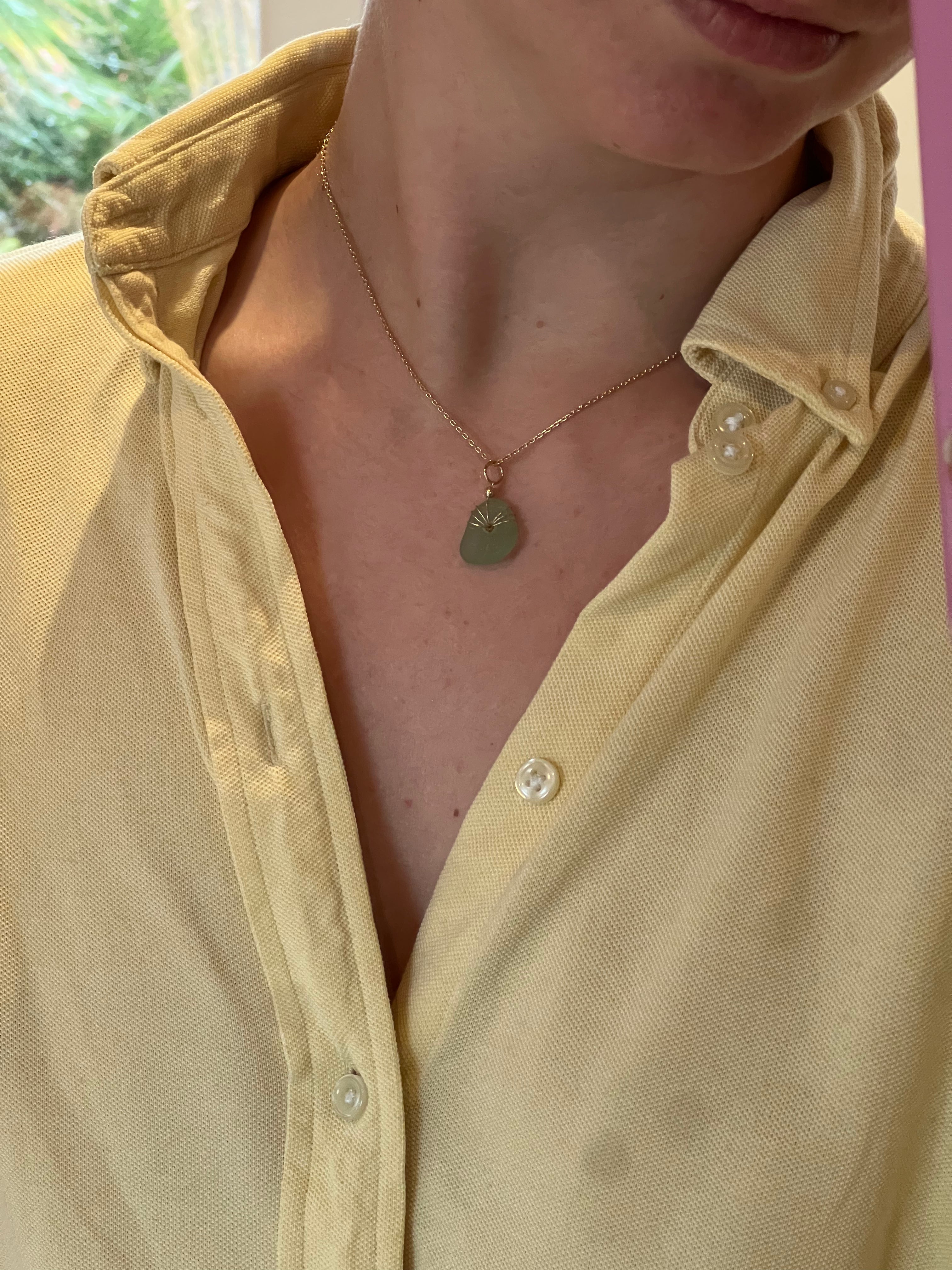 Découvrez le collier Alma en goldfilled , délicatement orné d'un petit fragment de verre dépoli par la mer. Imaginé et fabriqué à la main à Belle-Île par la marque Côte Sauvage, ce bijou lumineux apporte une touche naturelle et raffinée à votre tenue, à porter au quotidien.