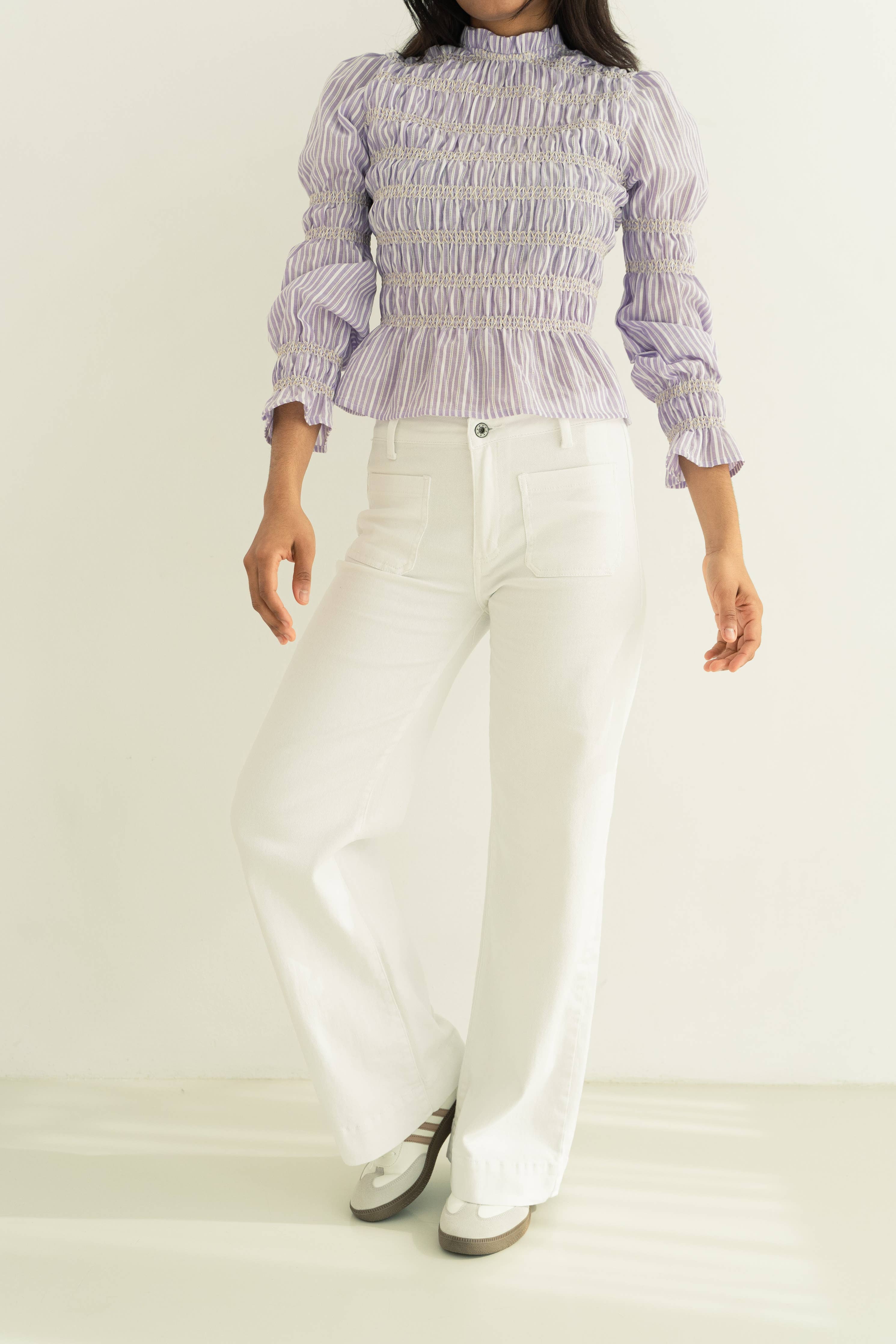 Jean long taille mi-haute/haute avec grandes poches avant ton sur ton.