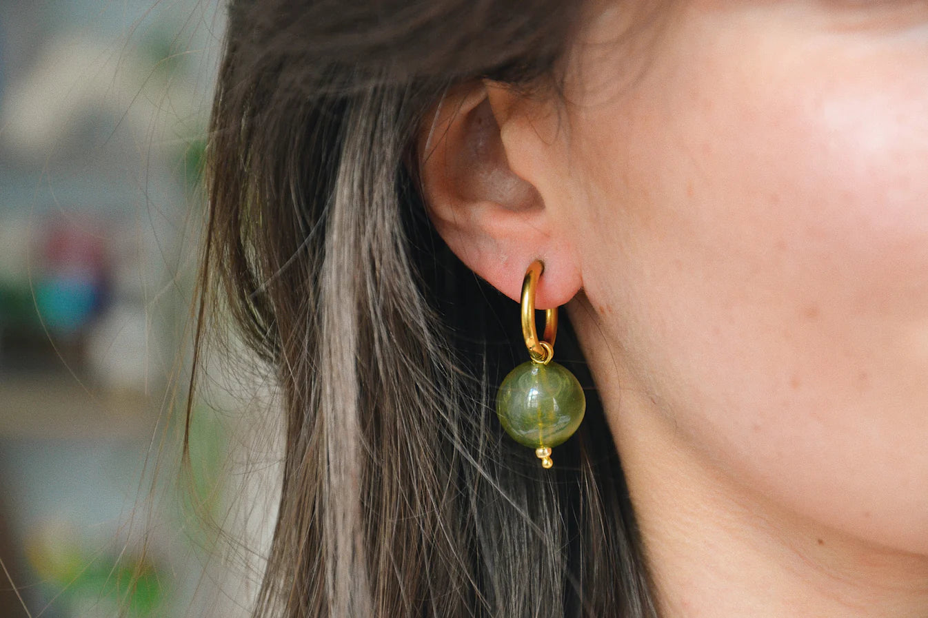 Les boucles d'oreilles Olga sont composées de créoles en acier inoxydable doré et d'une perle ronde acrylique . Grâce à leurs matériaux résistants, vous pouvez les porter sous l'eau sans souci : elles ne noircissent pas et ne s'oxydent pas.