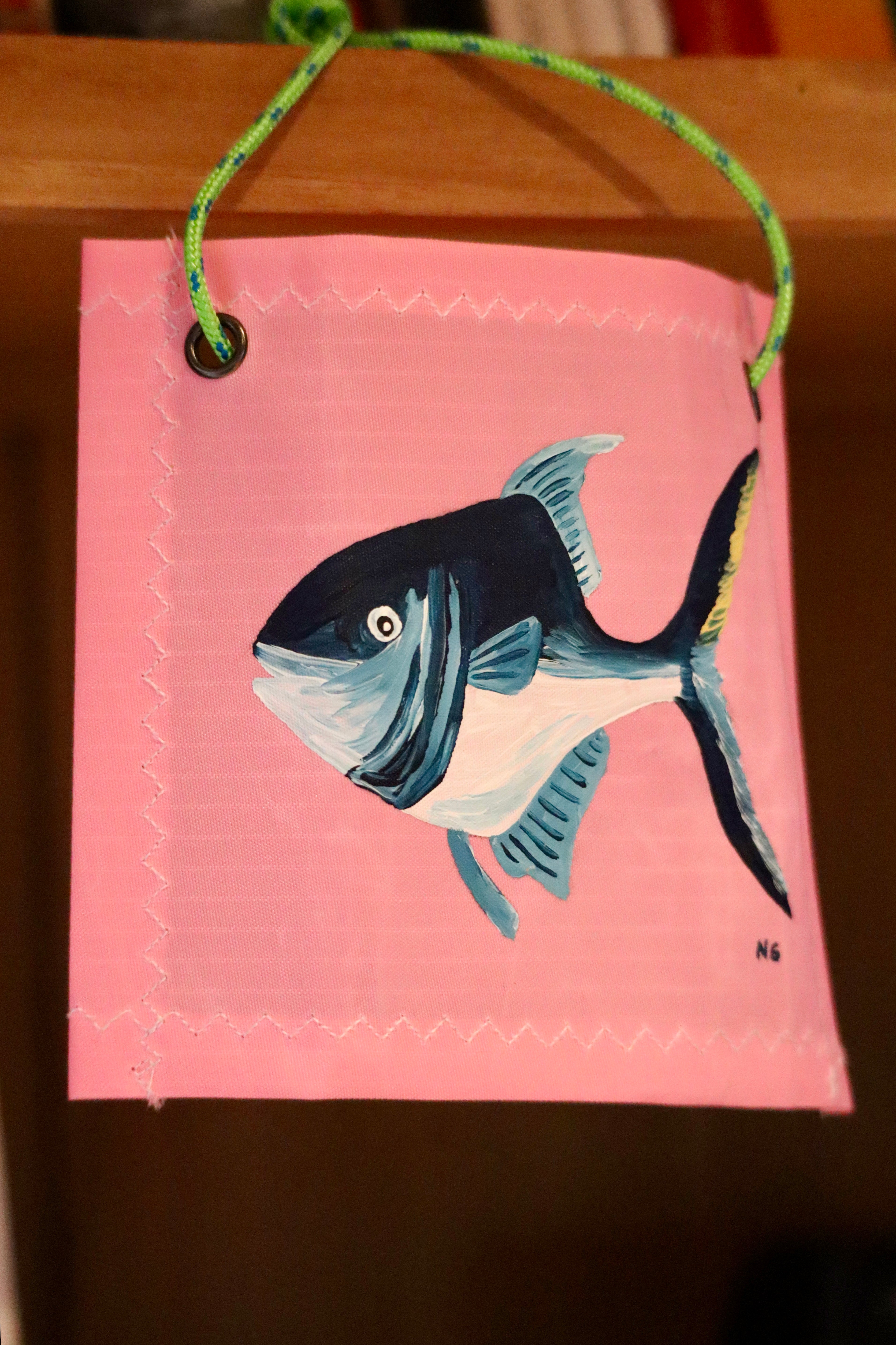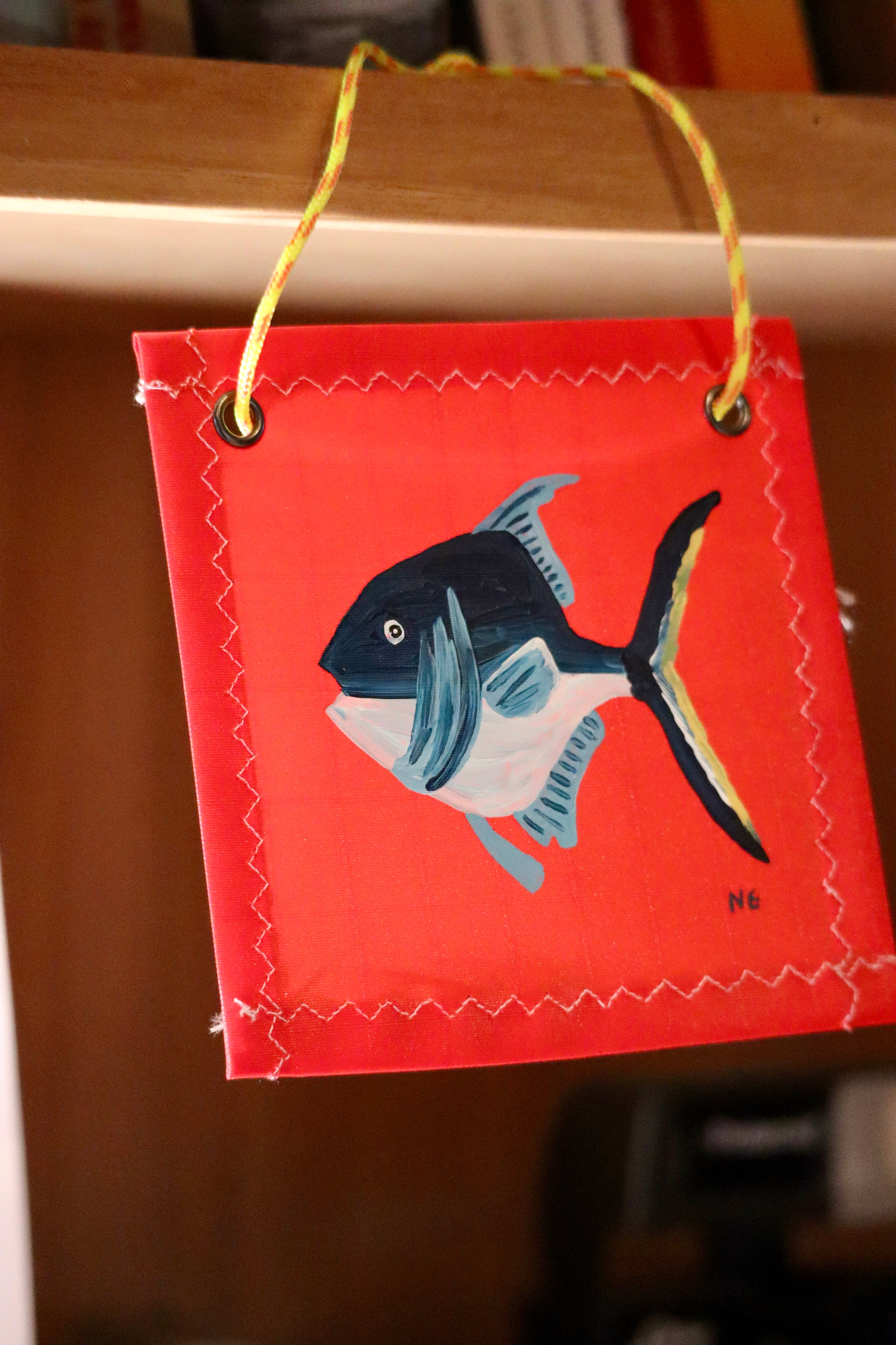 Apportez une touche marine unique à votre intérieur avec ces petites décorations signées Bleu Blanc Voile. Réalisées à la main à partir de voiles recyclées, elles représentent des homards ou poissons peints à l’acrylique avec soin et précision.