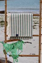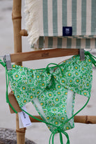 Optez pour le bas de bikini en crochet orné d’un imprimé marguerites sur un fond vert frais. Conçu pour offrir un confort optimal, ce bas de bikini est doublé à l’avant et à l’arrière pour une meilleure couverture. La fermeture à laçage latéral permet un ajustement personnalisé tout en ajoutant une touche de style unique.