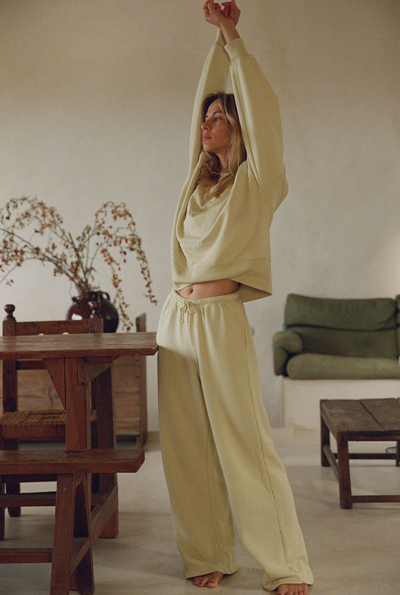 La teinte écru, subtilement rehaussée d'un vert anisé, s'associe facilement avec d'autres pièces de la collection.