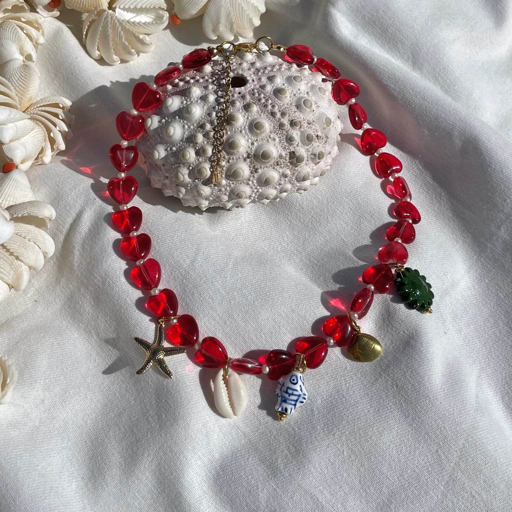 🌞 Matériaux : Perles en verre, perles d’eau douce , perles en céramique, coquillage et acier inoxydable doré/argent