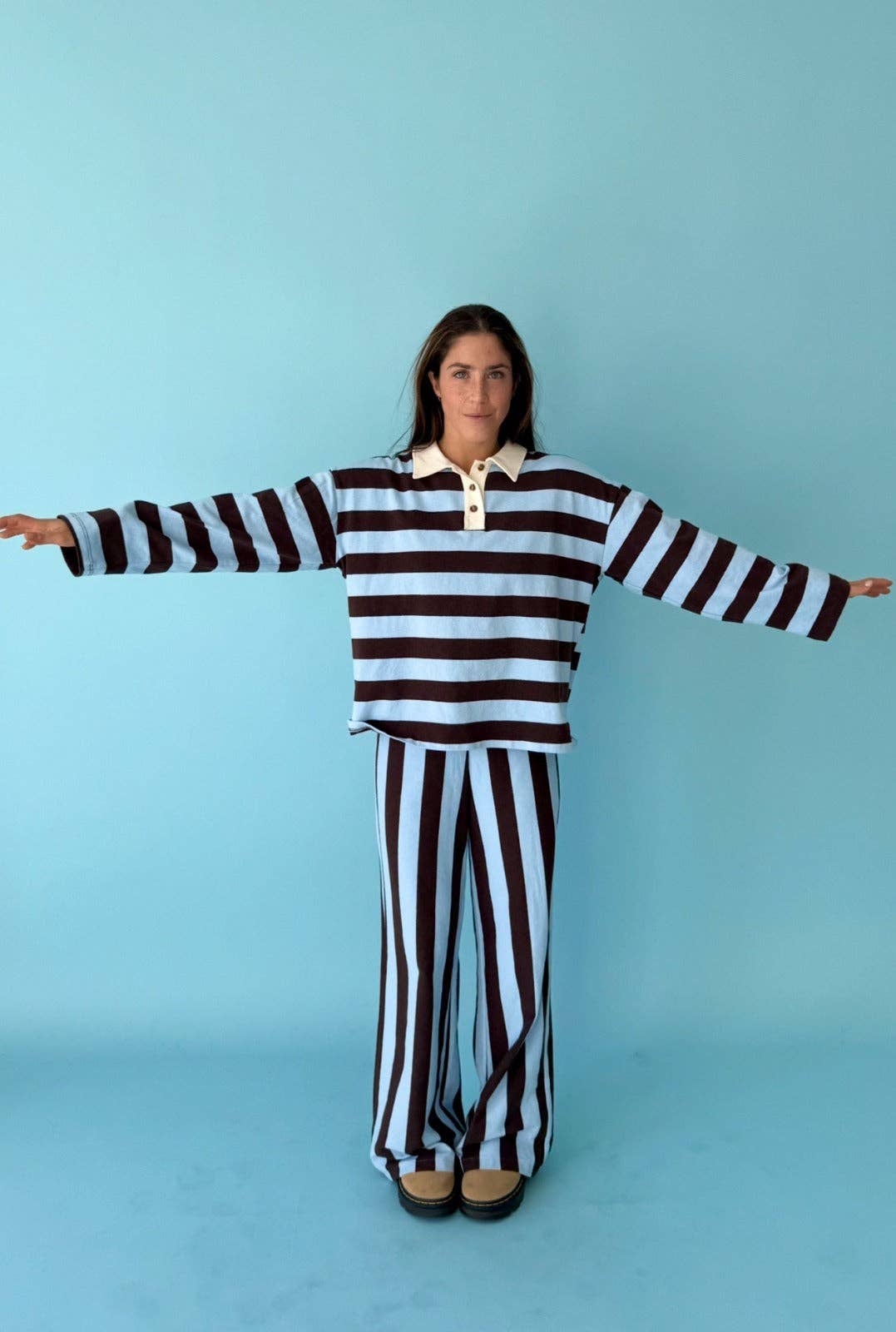 Pantalon Filipa Marron et Céleste