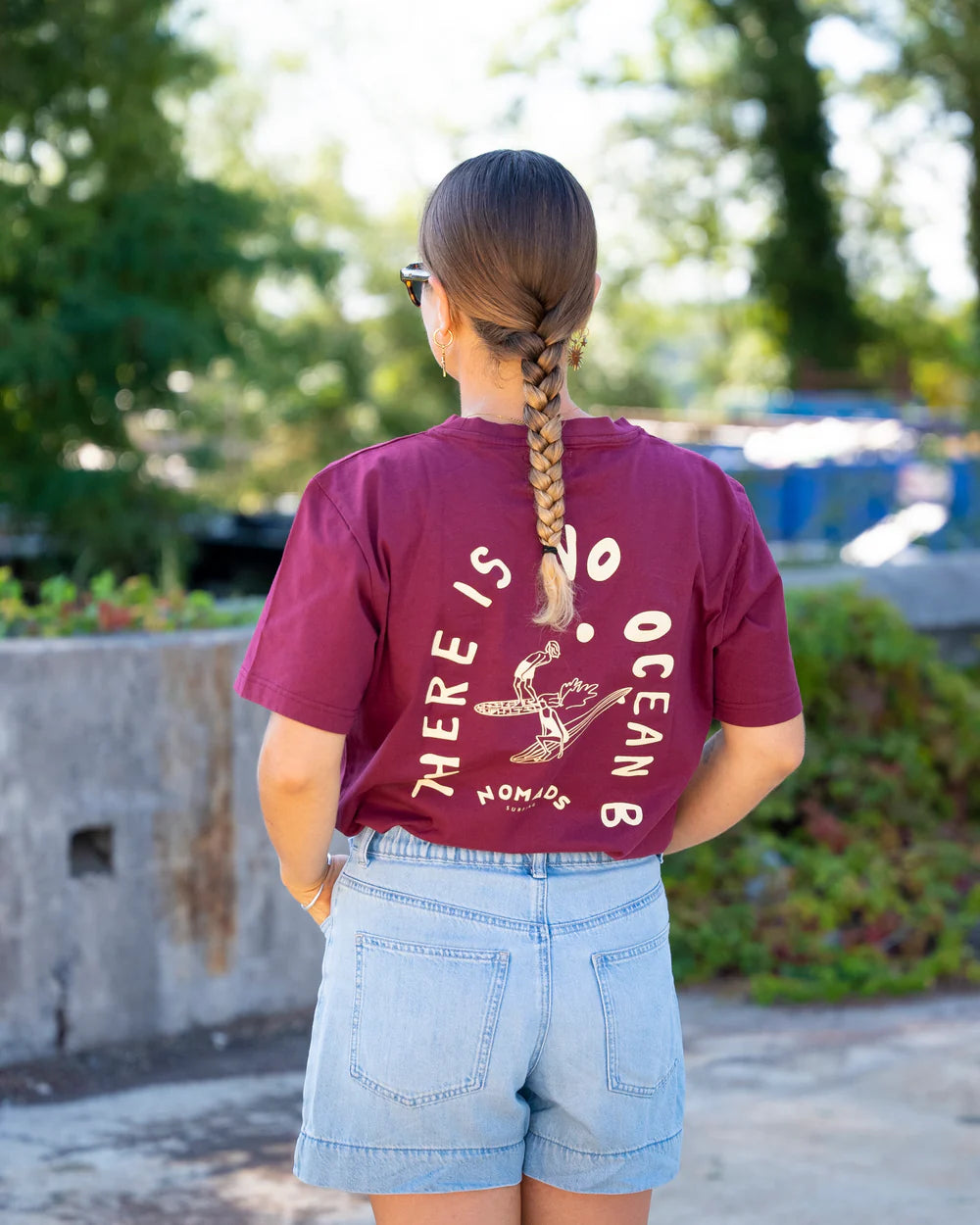 Un essentiel engagé, pensé pour celles et ceux qui ont l’océan au cœur. Le t-shirt bordeaux There is no Ocean B de Nomads Surfing affirme un message clair : il n’y a pas de planète de rechange.