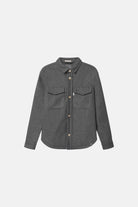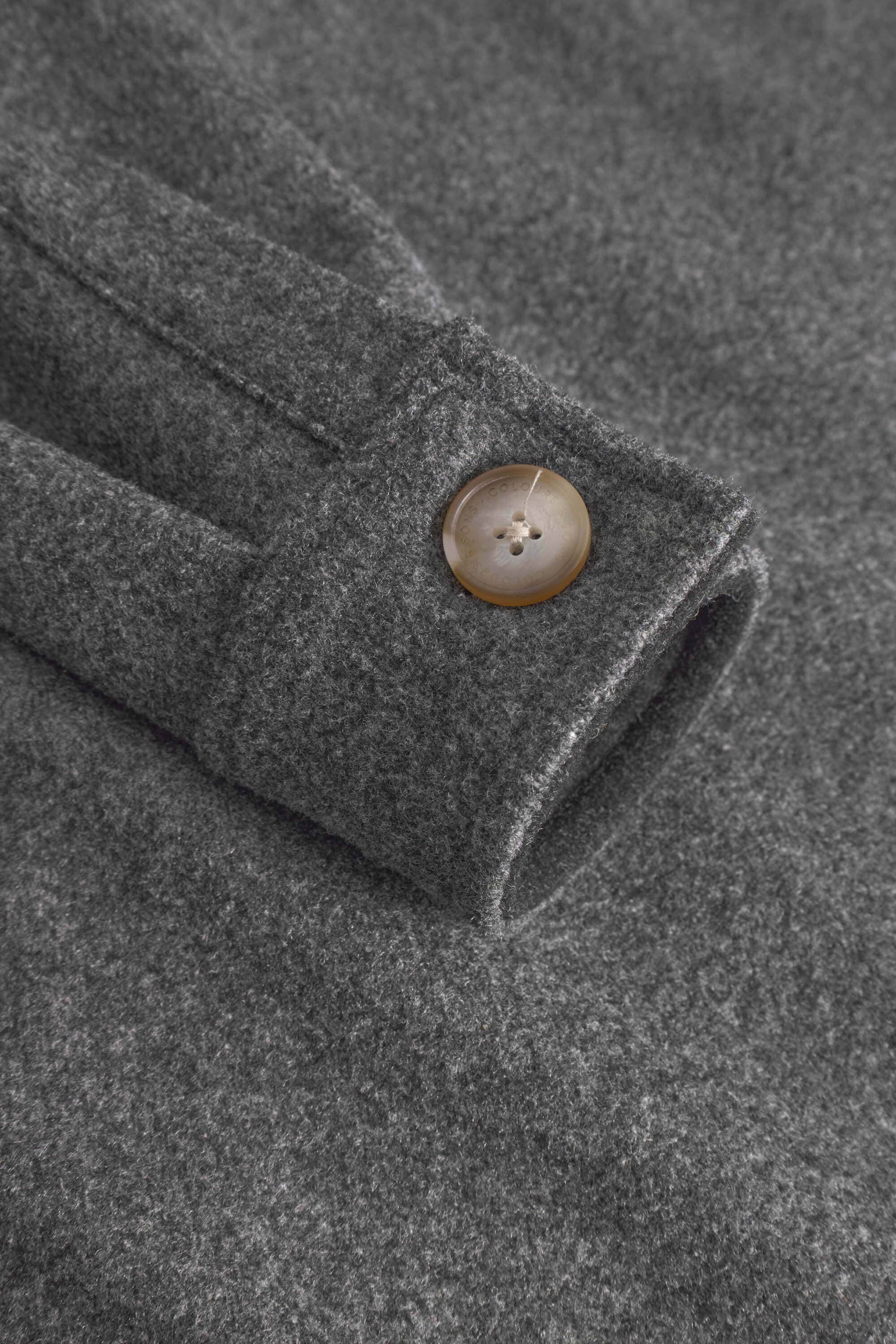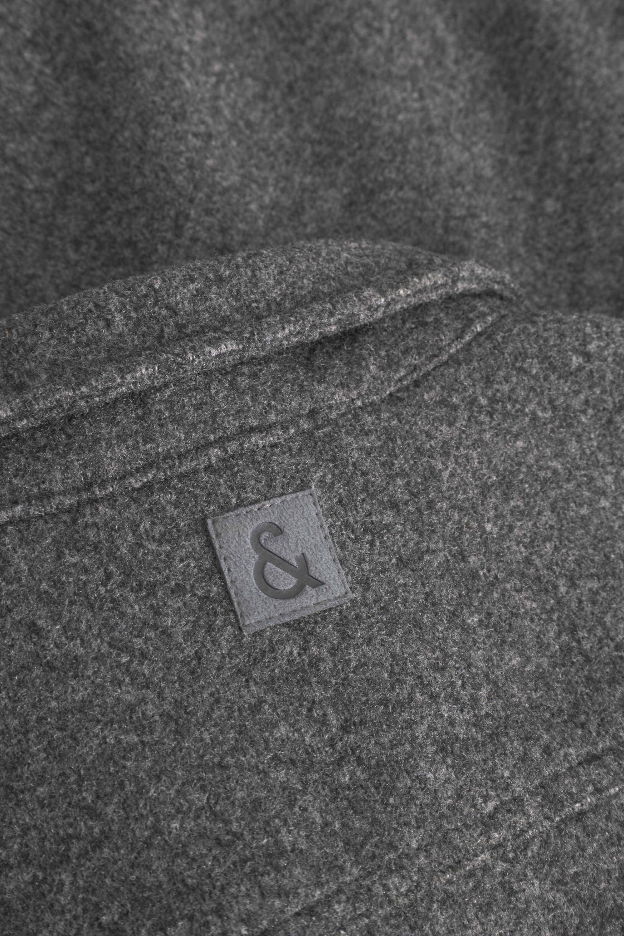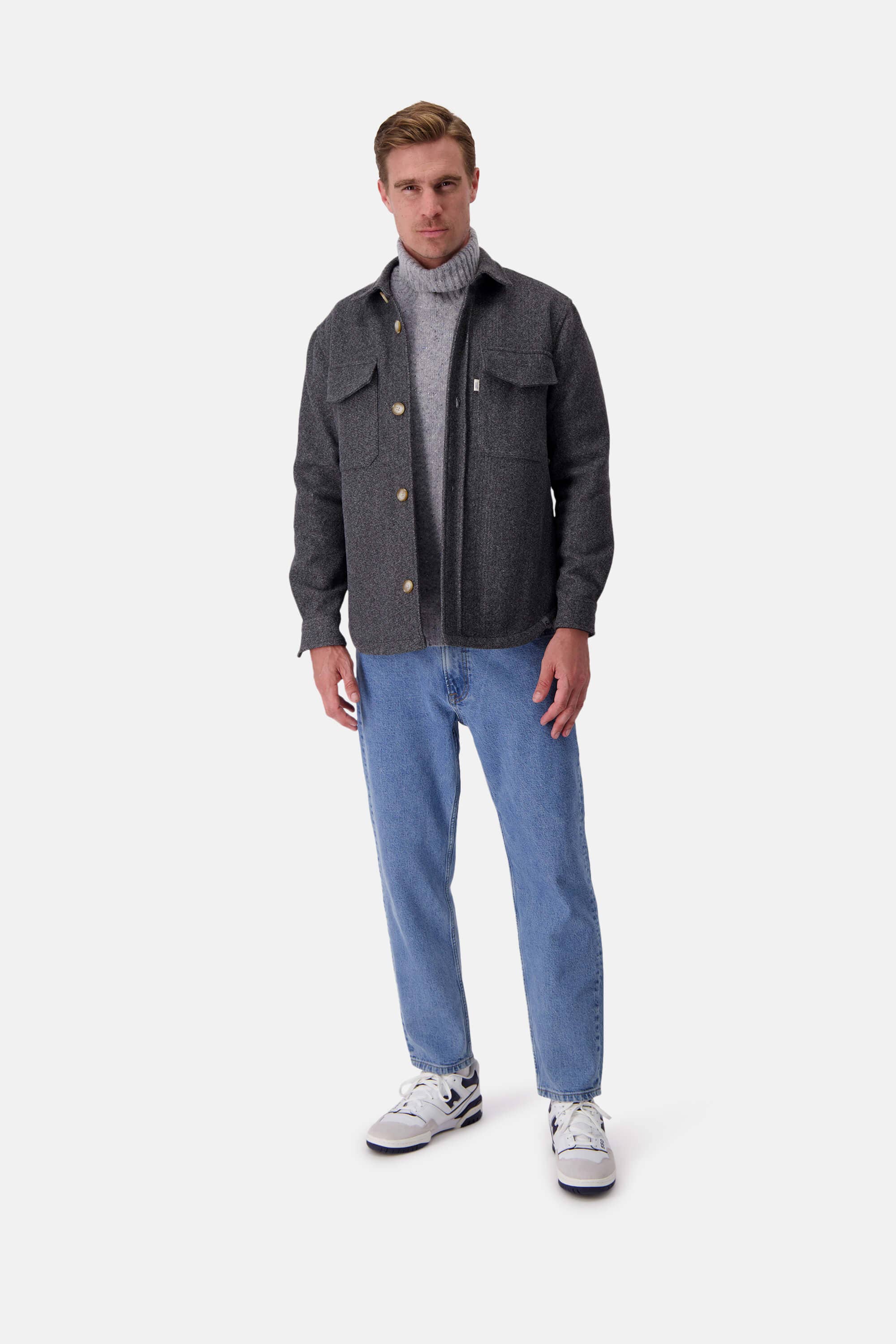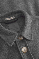 Son design soigné se caractérise par des poches poitrine plaquées, des boutons gravés et une étiquette en cuir végétalien discrètement apposée au niveau du col.