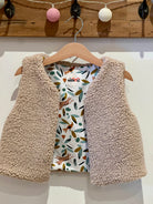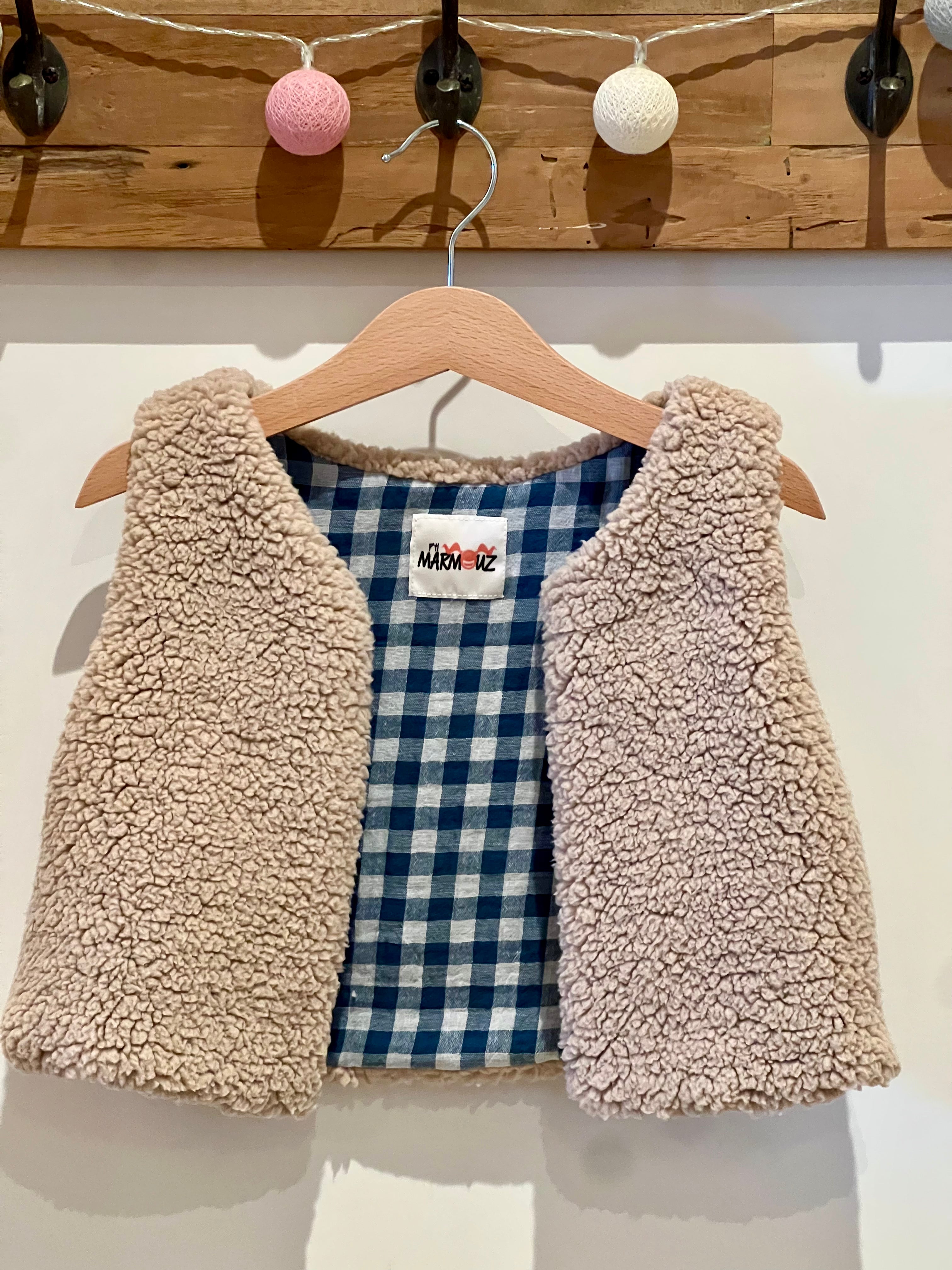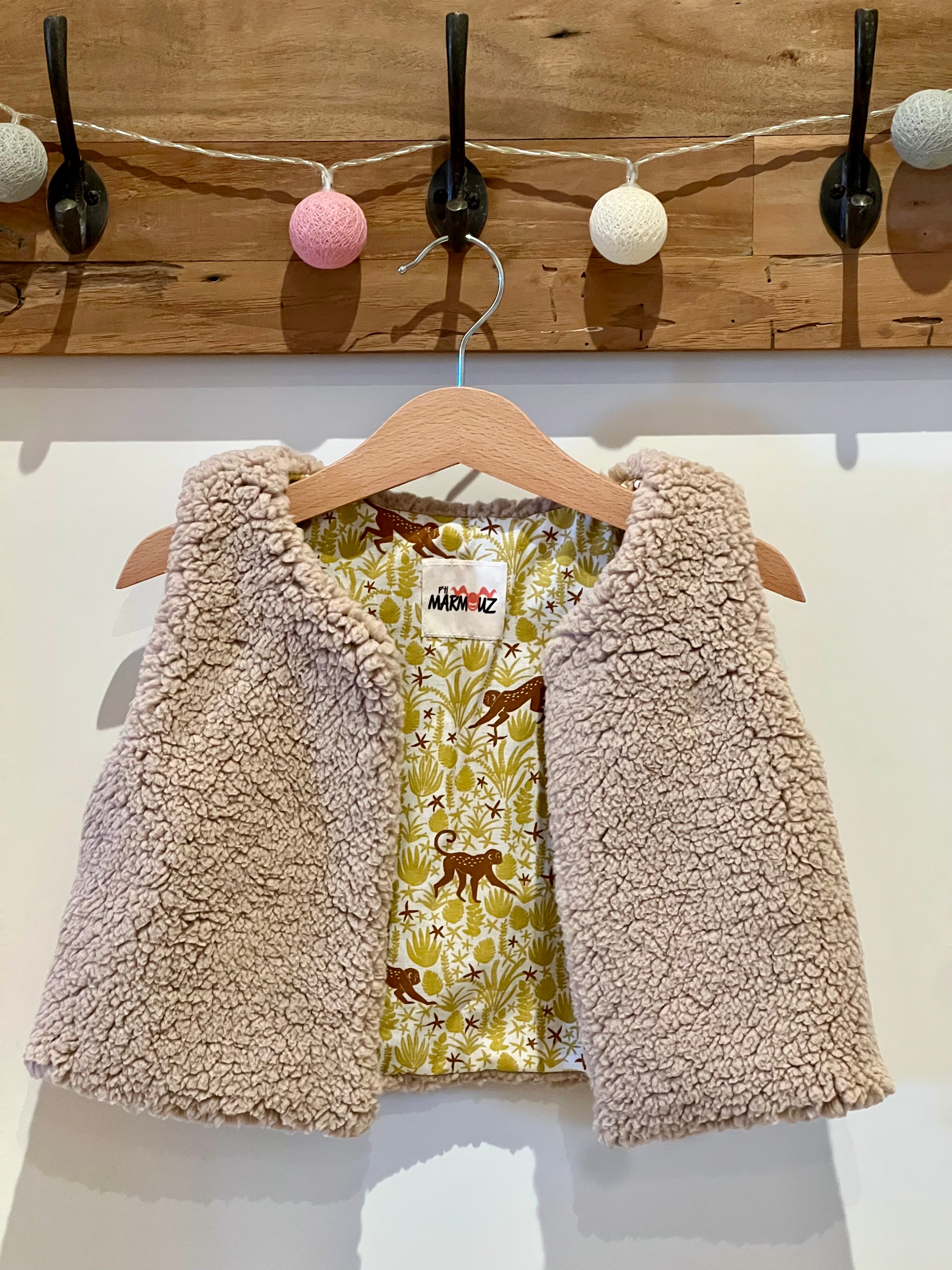 Le gilet de berger YAËL est conçu en sherpa polyester doux et en coton imprimé certifié Oeko-Tex , garantissant à votre enfant un vêtement confortable, chaud et respectueux de sa peau .