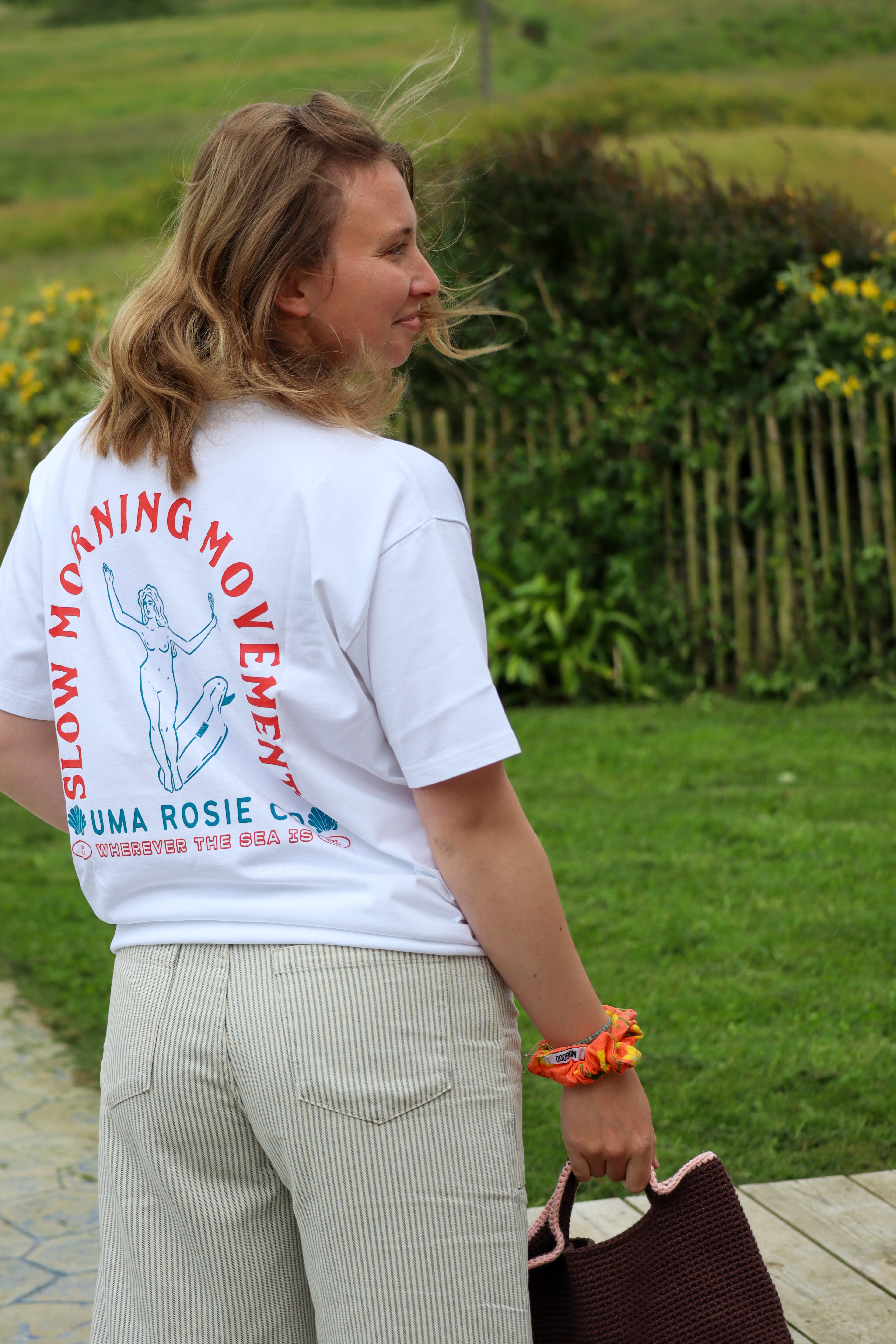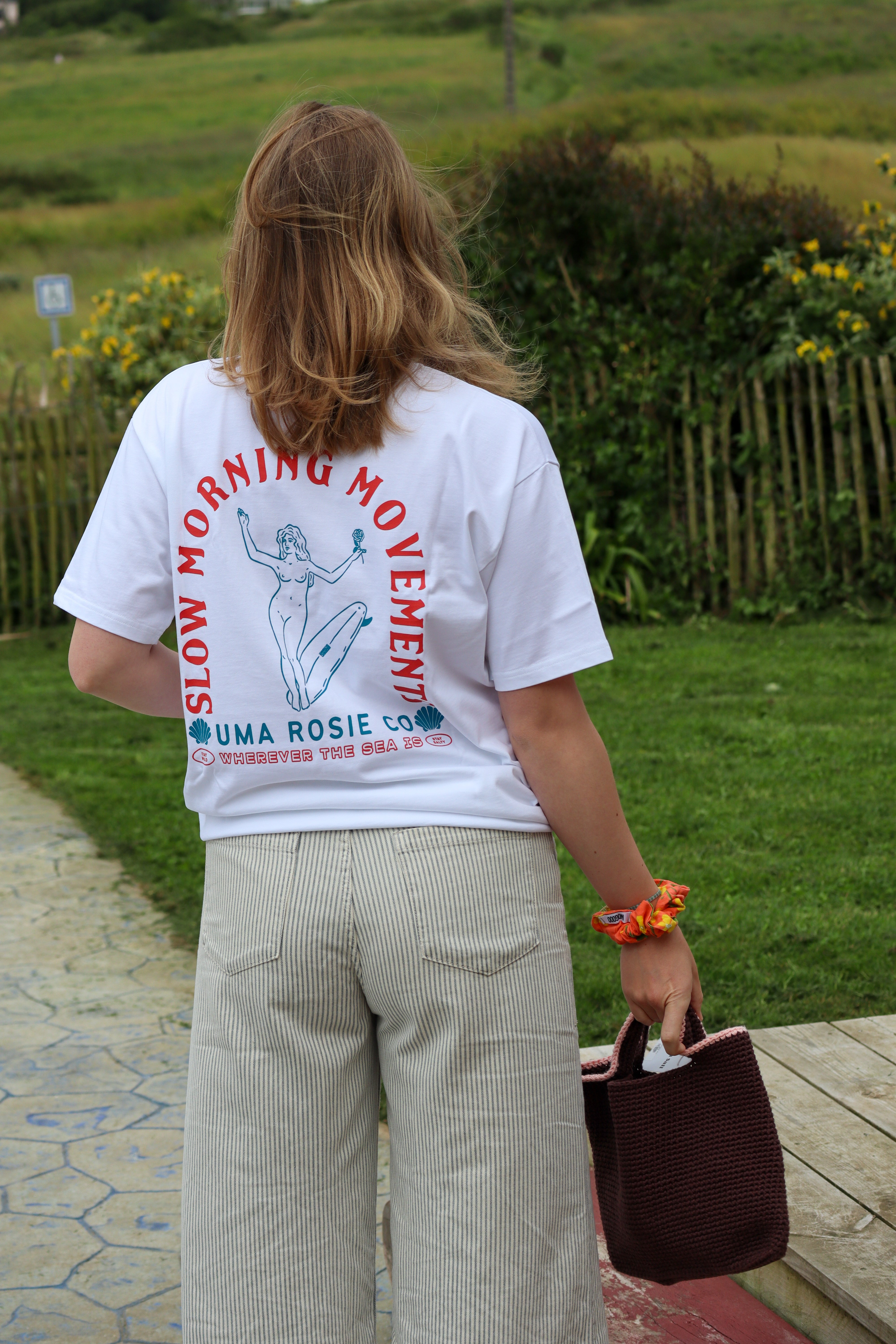 Plongez dans l’esprit surf avec ce t-shirt 100 % coton, fabriqué et sérigraphié en circuit ultra court près de Lille. Le T-shirt Surf Blanc Uma Rosie allie style, qualité et engagement local.
