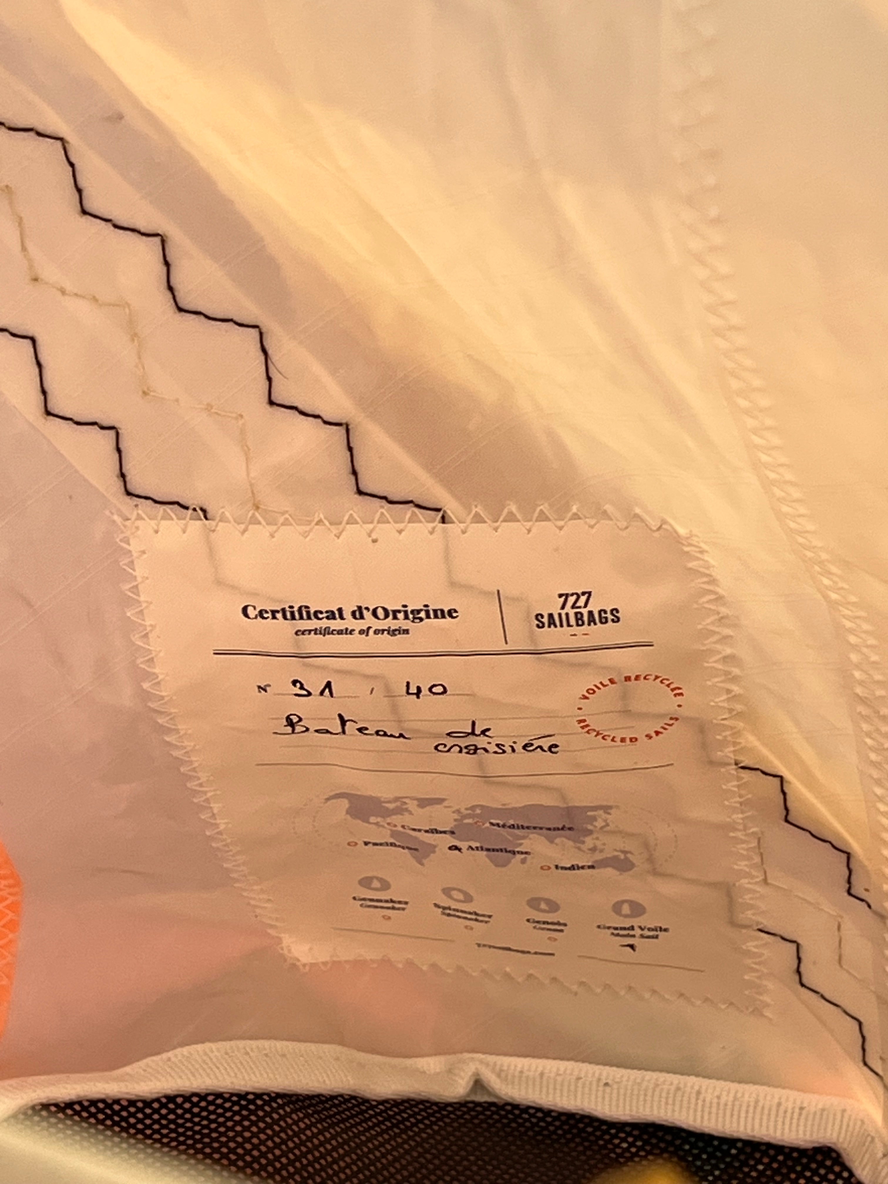 - Logo 727 Sailbags cousu avec l'iconique point zigzag